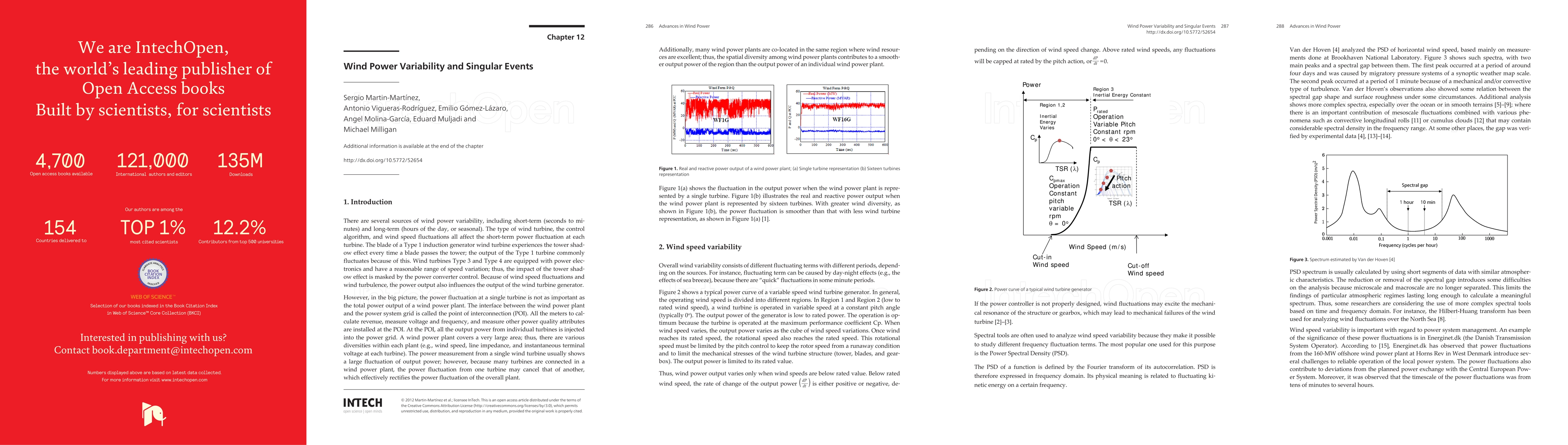 Examples of the different events affecting wind power fluctuations are shown.The behaviors and the responses of the Spanish power system and wind power plants experiencing such events were analyzed. Examples presented in this chapter show that some of the wind power integration issues are related to low-voltage ride-through. They are solved through strict grid code enforcement. Other solutions to manage the reserve power generation and the wind power fluctuations are also very important in order to achieve high levels of wind power penetration. In the Spanish case, this could require increasing the availability of dispatchable and fast-start power plants, as well as increasing wind power plant participation on supporting the power system by providing voltage control, inertial emulation, frequency control, oscillation damping, or updated voltage ride-through capabilities.