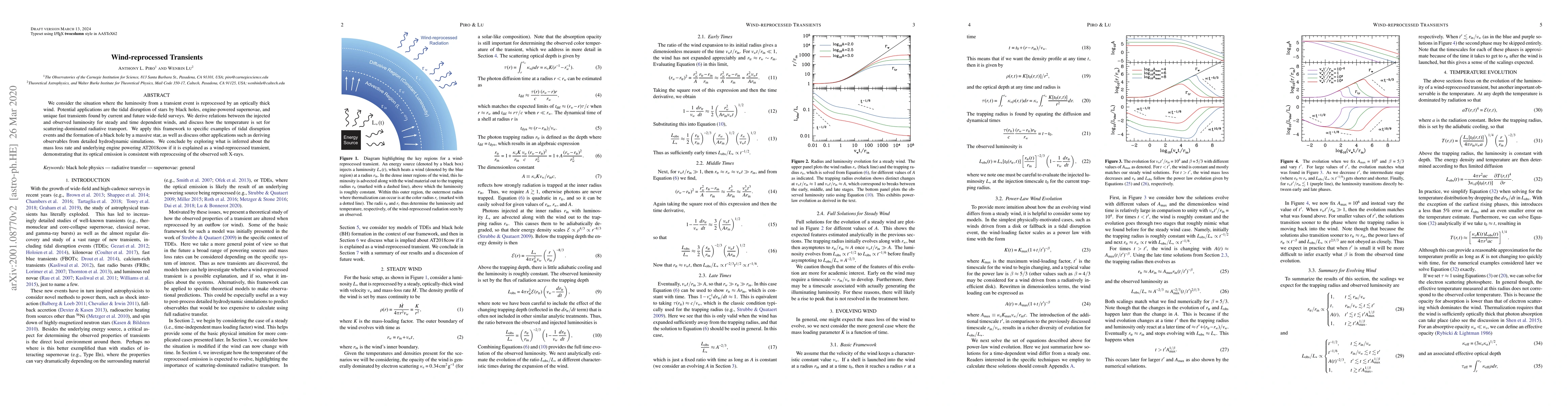 This paper explores how wind reprocessing affects transient events like tidal disruption of stars and engine-powered supernovae, providing a framework for analyzing their luminosity and temperature.