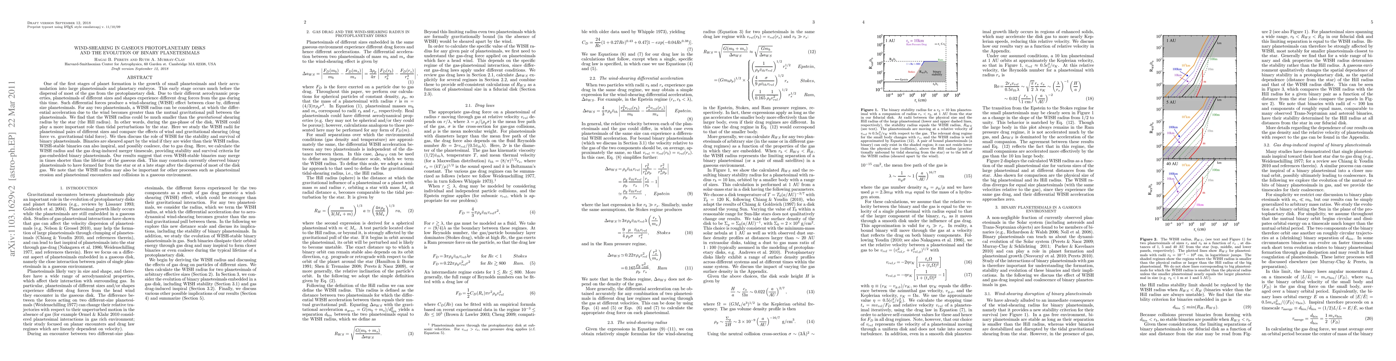 One of the first stages of planet formation is the growth of small planetesimals. This early stage occurs much before the dispersal of most of the gas from the protoplanetary disk. Due to their different aerodynamic properties, planetesimals of different sizes and shapes experience different drag forces from the gas during this time. Such differential forces produce a wind-shearing (WISH) effect between close by, different size planetesimals. For any two planetesimals, a WISH radius can be considered, at which the differential acceleration due to the wind becomes greater than the mutual gravitational pull between the planetesimals. We find that the WISH radius could be much smaller than the Hill radius, i.e. WISH could play a more important role than tidal perturbations by the star. Here we study the WISH radii for planetesimal pairs of different sizes and compare the effects of wind and gravitational shearing (drag force vs. gravitational tidal force). We then discuss the role of WISH for the stability and survival of binary planetesimals. Binaries are sheared apart by the wind if they are wider than their WISH radius. WISH-stable binaries can inspiral and possibly coalesce due to gas drag. Here, we calculate the WISH radius and the gas drag-induced merger timescale, providing stability and survival criteria for gas-embedded binary planetesimals. Our results suggest that even WISH-stable binaries may merge in times shorter than the lifetime of the gaseous disk. This may constrain currently observed binary planetesimals to have formed far from the star or at a late stage after the dispersal of most of the disk gas. We note that the WISH radius may also be important for other processes such as planetesimal erosion and planetesimal encounters and collisions in a gaseous environment.