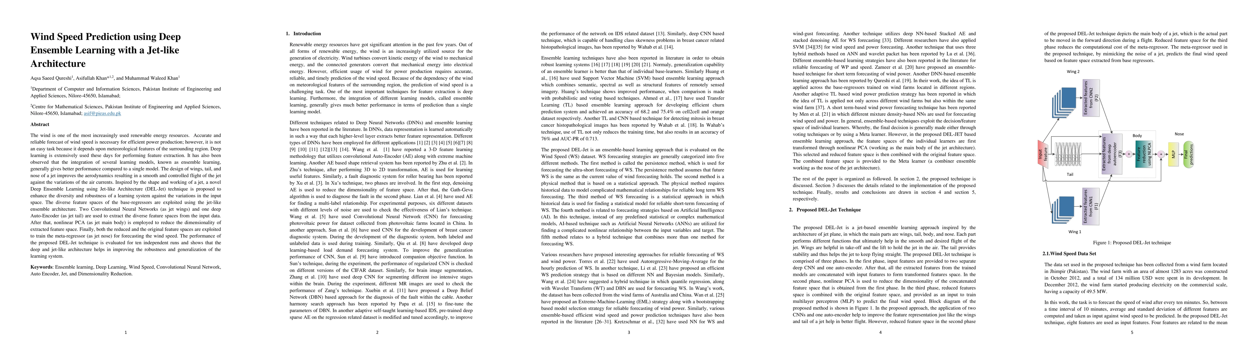 A new method called Deep Ensemble Learning with a Jet-like Architecture (DEL-Jet) uses multiple neural networks to predict wind speed more accurately and robustly than previous methods.