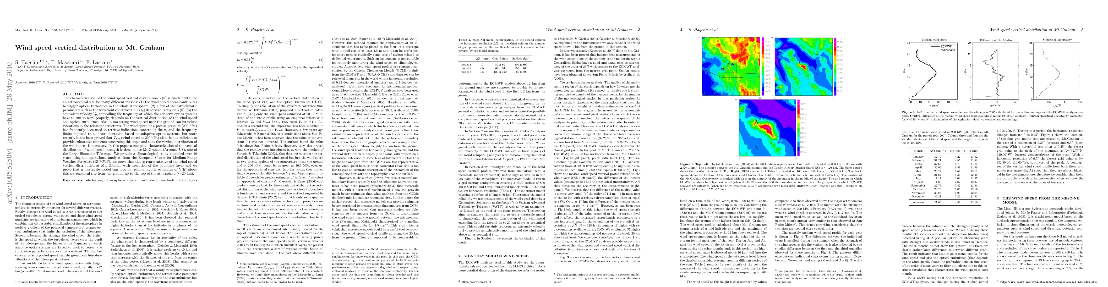 This paper characterizes the vertical distribution of wind speed above Mt. Graham, Arizona, using a 10-year climatological study from ECMWF data, and demonstrates that a mesoscale model can reliably estimate wind speed profiles up to 20 km, crucial for understanding optical turbulence and optimizing adaptive optics systems.