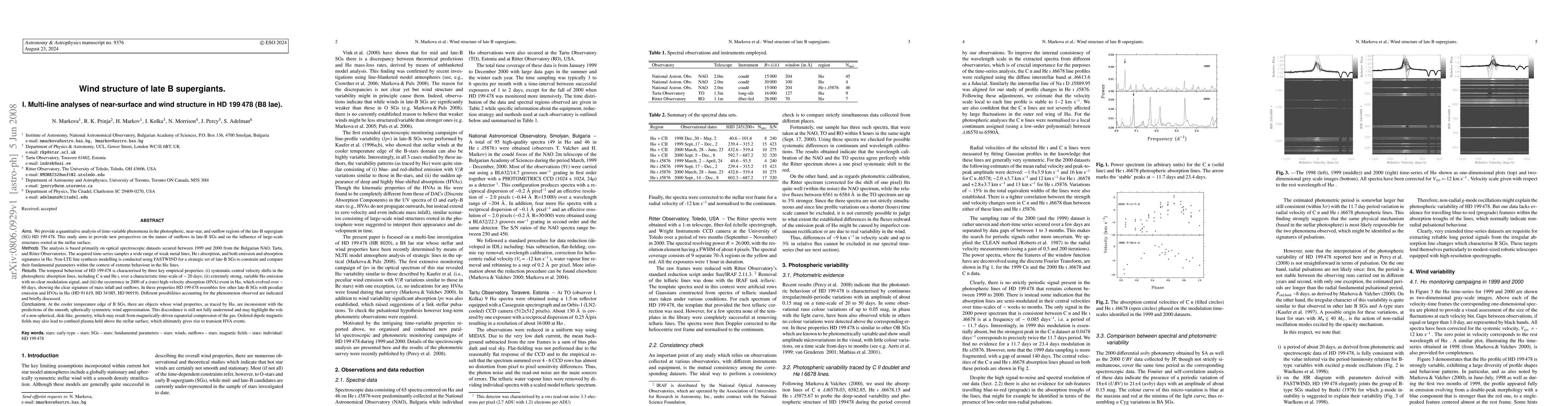We provide a quantitative analysis of time-variable phenomena in the photospheric, near-star, and outflow regions of the late-B supergiant (SG) HD 199478. The analysis is based primarily on optical spectroscopic datasets secured between 1999 and 2000 from the Bulgarian NAO, Tartu, and Ritter Observatories. The temporal behaviour of HD 199478 is characterised by three key empirical properties: (i) systematic central velocity shifts in the photospheric absorption lines, including C II and He I, over a characteristic time-scale of abou 20 days; (ii) extremely strong, variable H alpha emission with no clear modulation signal, and (iii) the occurrence in 2000 of a (rare) high-velocity absorption (HVA) event in H alpha, which evolved over about 60 days, showing the clear signature of mass infall and outflows. In these properties HD 199478 resembles few other late-B SGs with peculiar emission and HVAs in H alpha (HD 91619, HD 34085, HD 96919). Non-LTE line synthesis modelling is conducted using FASTWIND for these late-B SGs to constrain and compare their fundamental parameters within the context of extreme behaviour in the H alpha lines. Our analysis indicate that at the cooler temperature edge of B SGs, there are objects whose wind properties, as traced by H alpha, are inconsistent with the predictions of the smooth, spherically symmetric wind approximation. This discordance is still not fully understood and may highlight the role of a non-spherical, disk-like, geometry, which may result from magnetically-driven equatorial compression of the gas. Ordered dipole magnetic fields may also lead to confined plasma held above the stellar surface, which ultimately gives rise to transient HVA events.