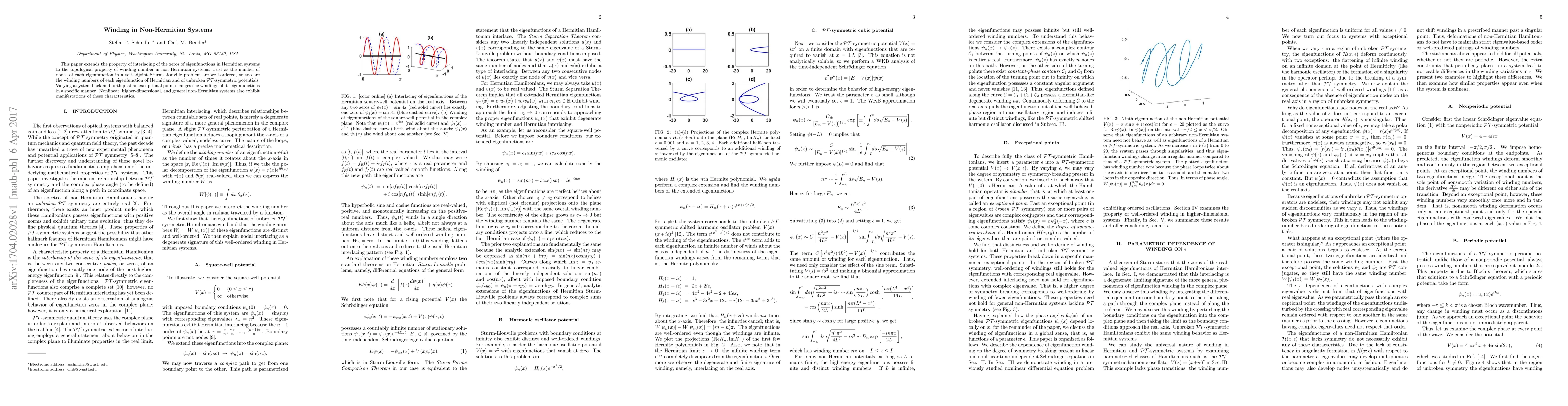 This paper extends the property of interlacing of the zeros of eigenfunctions in Hermitian systems to the topological property of winding number in non-Hermitian systems. Just as the number of nodes of each eigenfunction in a self-adjoint Sturm-Liouville problem are well-ordered, so too are the winding numbers of each eigenfunction of Hermitian and of unbroken PT-symmetric potentials. Varying a system back and forth past an exceptional point changes the windings of its eigenfunctions in a specific manner. Nonlinear, higher-dimensional, and general non-Hermitian systems also exhibit manifestations of these characteristics.