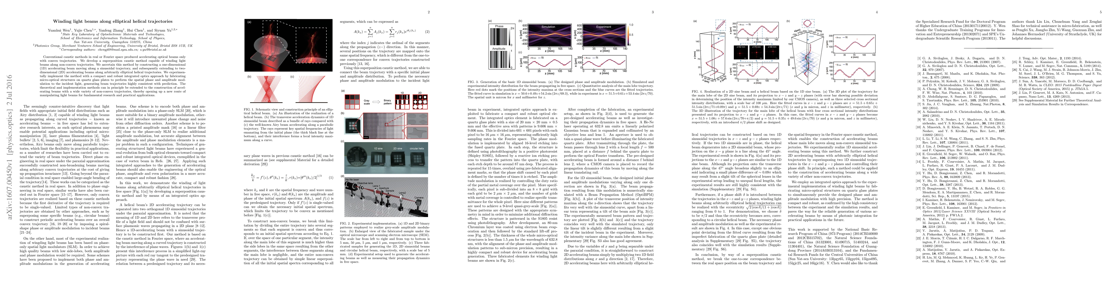 Conventional caustic methods in real or Fourier space produced accelerating optical beams only with convex trajectories. We develop a superposition caustic method capable of winding light beams along non-convex trajectories. We ascertain this method by constructing a one-dimensional (1D) accelerating beam moving along a sinusoidal trajectory, and subsequently extending to two-dimensional (2D) accelerating beams along arbitrarily elliptical helical trajectories. We experimentally implement the method with a compact and robust integrated optics approach by fabricating micro-optical structures on quartz glass plates to perform the spatial phase and amplitude modulation to the incident light, generating beam trajectories highly consistent with prediction. The theoretical and implementation methods can in principle be extended to the construction of accelerating beams with a wide variety of non-convex trajectories, thereby opening up a new route of manipulating light beams for fundamental research and practical applications.