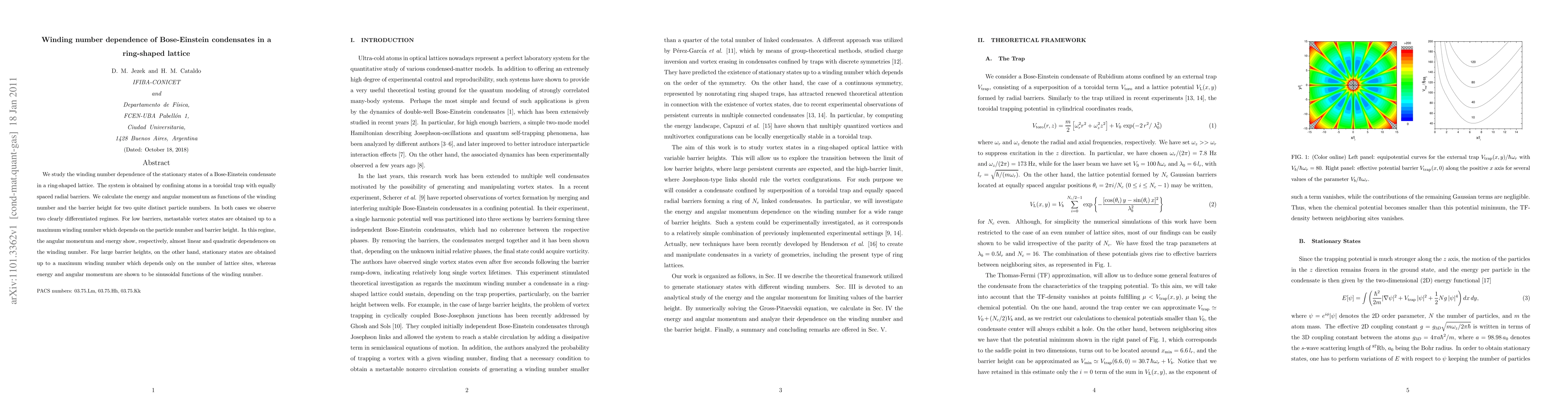 Researchers study how the winding number affects Bose-Einstein condensates in a ring-shaped lattice, finding two distinct regimes: one with linear energy dependence and another with sinusoidal energy dependence.