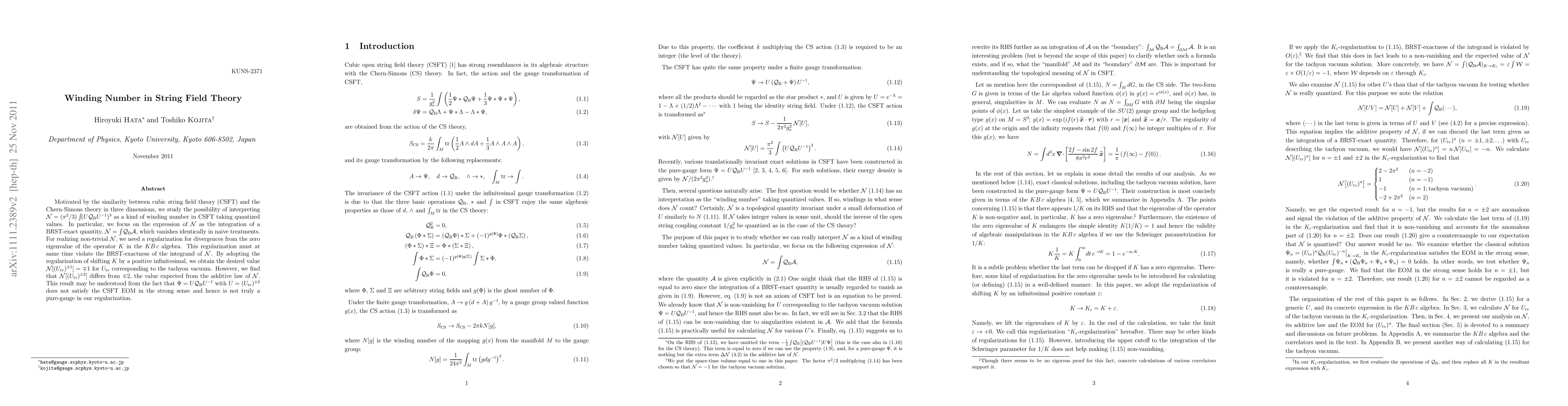 Motivated by the similarity between cubic string field theory (CSFT) and the Chern-Simons theory in three dimensions, we study the possibility of interpreting N=(\pi^2/3)\int(U Q_B U^{-1})^3 as a kind of winding number in CSFT taking quantized values. In particular, we focus on the expression of N as the integration of a BRST-exact quantity, N=\int Q_B A, which vanishes identically in naive treatments. For realizing non-trivial N, we need a regularization for divergences from the zero eigenvalue of the operator K in the KBc algebra. This regularization must at same time violate the BRST-exactness of the integrand of N. By adopting the regularization of shifting K by a positive infinitesimal, we obtain the desired value N[(U_tv)^{\pm 1}]=\mp 1 for U_tv corresponding to the tachyon vacuum. However, we find that N[(U_tv)^{\pm 2}] differs from \mp 2, the value expected from the additive law of N. This result may be understood from the fact that \Psi=U Q_B U^{-1} with U=(U_tv)^{\pm 2} does not satisfy the CSFT EOM in the strong sense and hence is not truly a pure-gauge in our regularization.