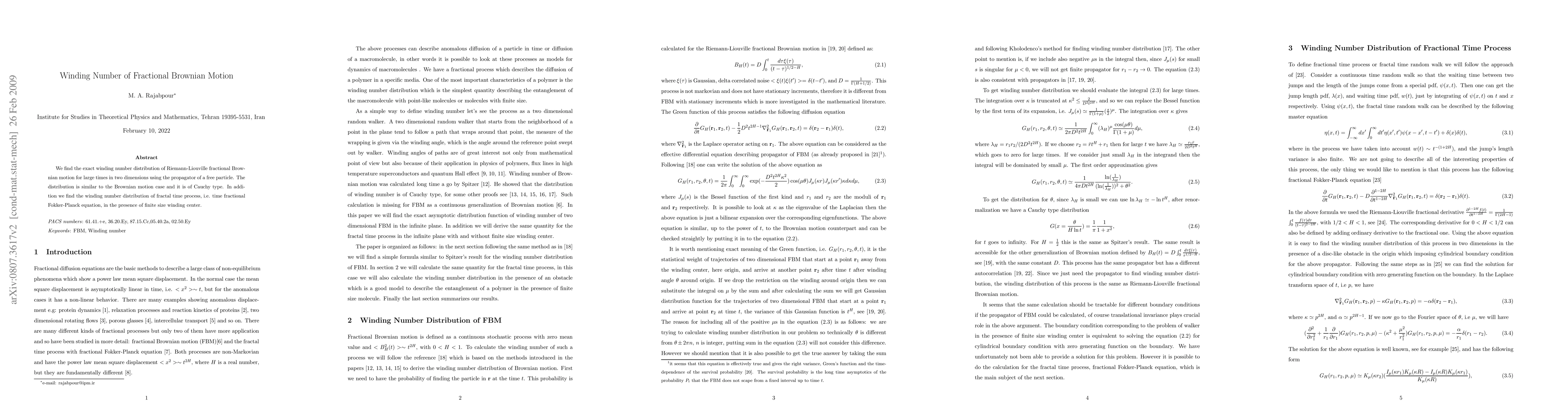 The research calculates the winding number distribution of Riemann-Liouville fractional Brownian motion and fractional time process using the propagator of a free particle. It employs the Green's function approach, diffusion equations, and Bessel functions to derive the solutions.