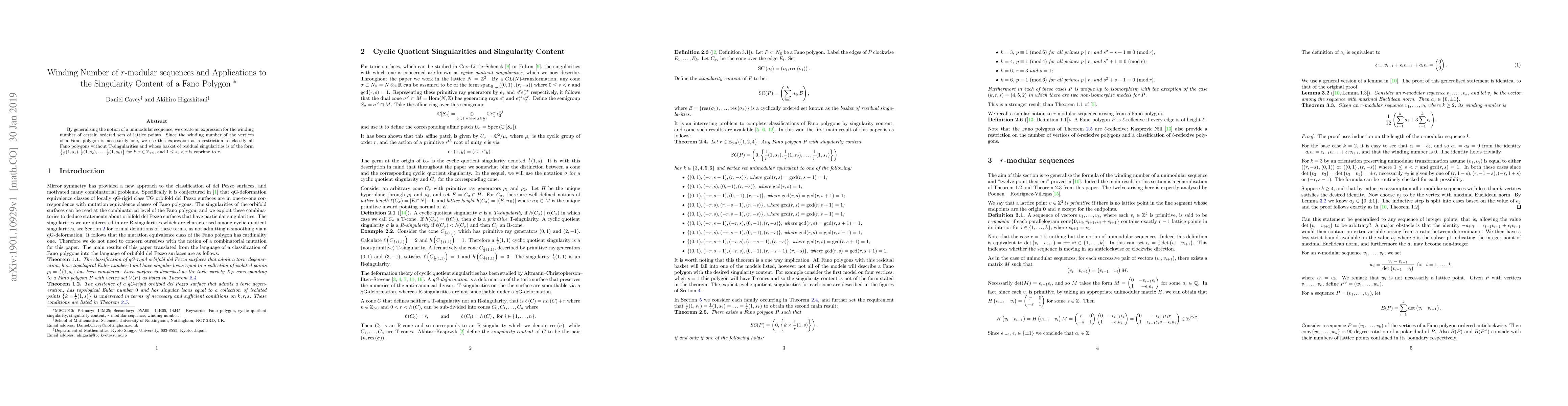 By generalising the notion of a unimodular sequence, we create an expression for the winding number of certain ordered sets of lattice points. Since the winding number of the vertices of a Fano polygon is necessarily one, we use this expression as a restriction to classify all Fano polygons without T-singularities and whose basket of residual singularities is of the form $\left\{ \frac{1}{r}(1,s_{1}), \frac{1}{r}(1,s_{2}), \ldots, \frac{1}{r}(1,s_{k}) \right\}$ for $k,r \in \mathbb{Z}_{>0}$, and $1 \leq s_{i} < r$ is coprime to $r$.