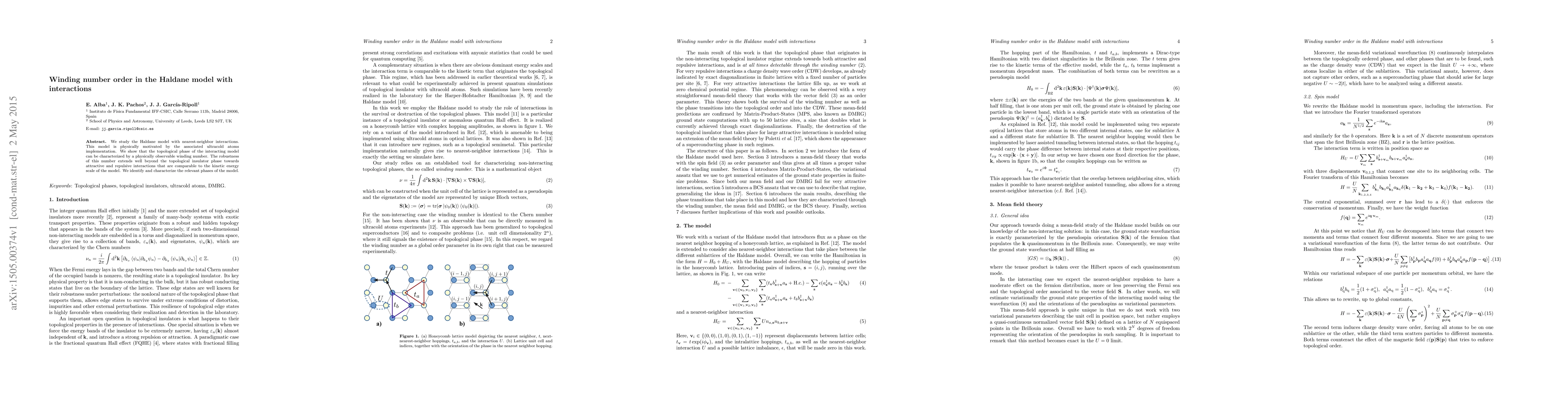 We study the Haldane model with nearest-neighbor interactions. This model is physically motivated by the associated ultracold atoms implementation. We show that the topological phase of the interacting model can be characterized by a physically observable winding number. The robustness of this number extends well beyond the topological insulator phase towards attractive and repulsive interactions that are comparable to the kinetic energy scale of the model. We identify and characterize the relevant phases of the model.