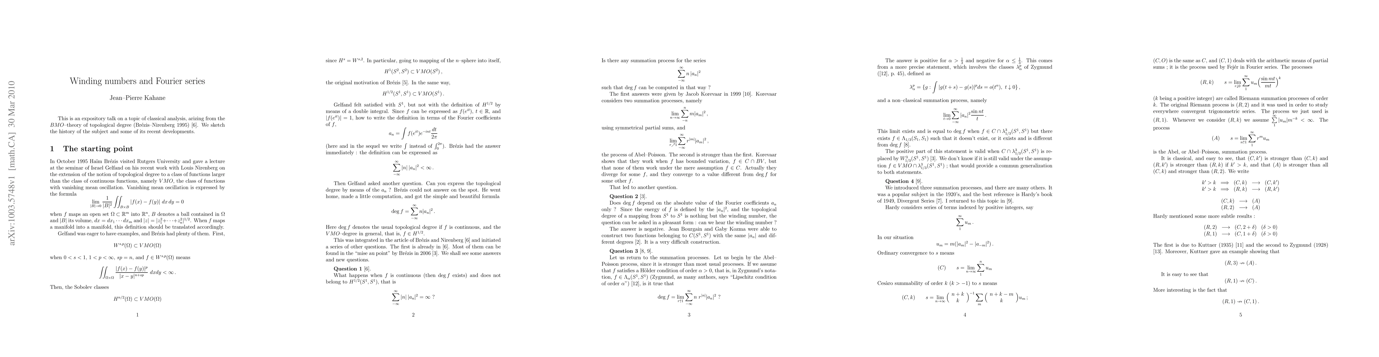 This is an expository talk on a topic of classical analysis, arising from the VMO theory of the topological degree due to Br\'ezis and Nirenberg (1995). We sketch the history of the subject and some of its recent developments. The paper is organized as a sequence of questions. Most of them, in particular the last one, deal with Fourier series of continuous functions of constant absolute value. One of them contains new results on the comparison of summation processes.