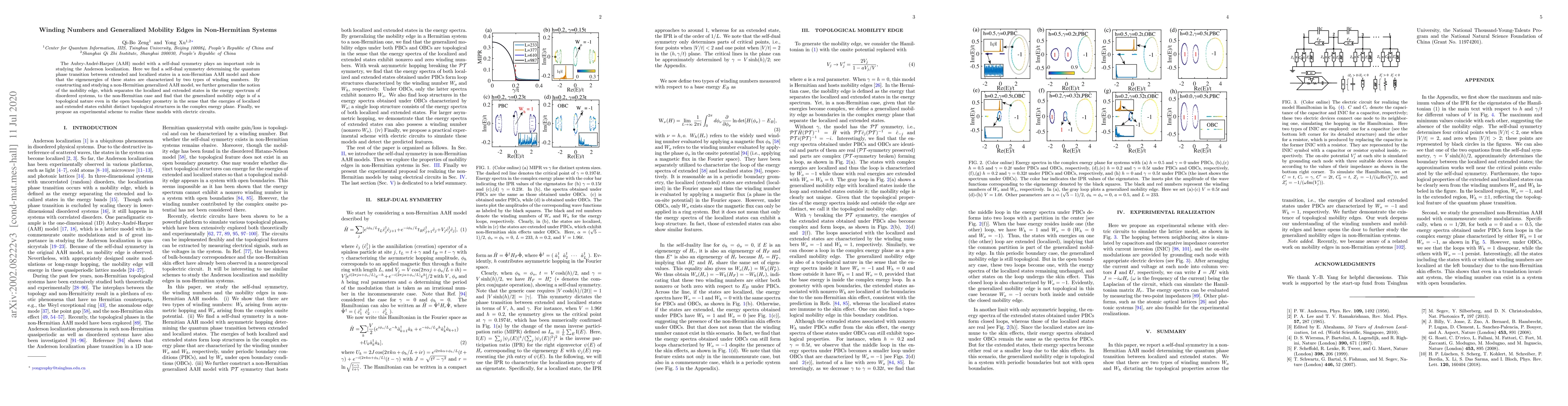 This work deepens the understanding of winding numbers and mobility edges in non-Hermitian systems, opening avenues for further study of generalized mobility edges, which have implications for disordered systems with gain and loss.