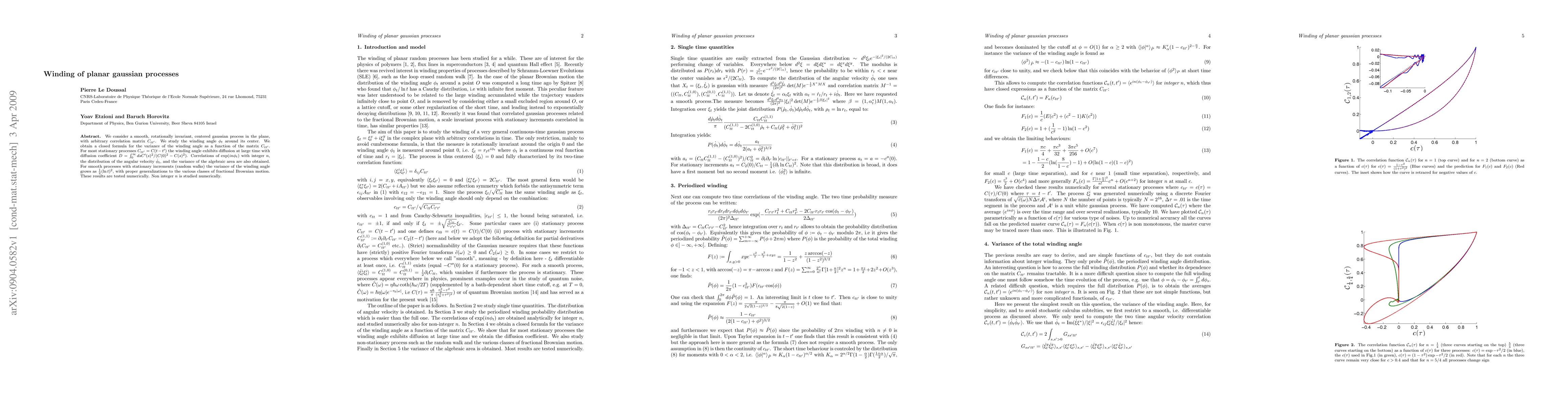 This paper derives a closed formula for the variance of the winding angle of a rotationally invariant Gaussian process in the plane, revealing diffusion behavior at large times. It also explores correlations, angular velocity distribution, and area variance, with specific growth rates for smooth processes and fractional Brownian motion, validated through numerical tests.