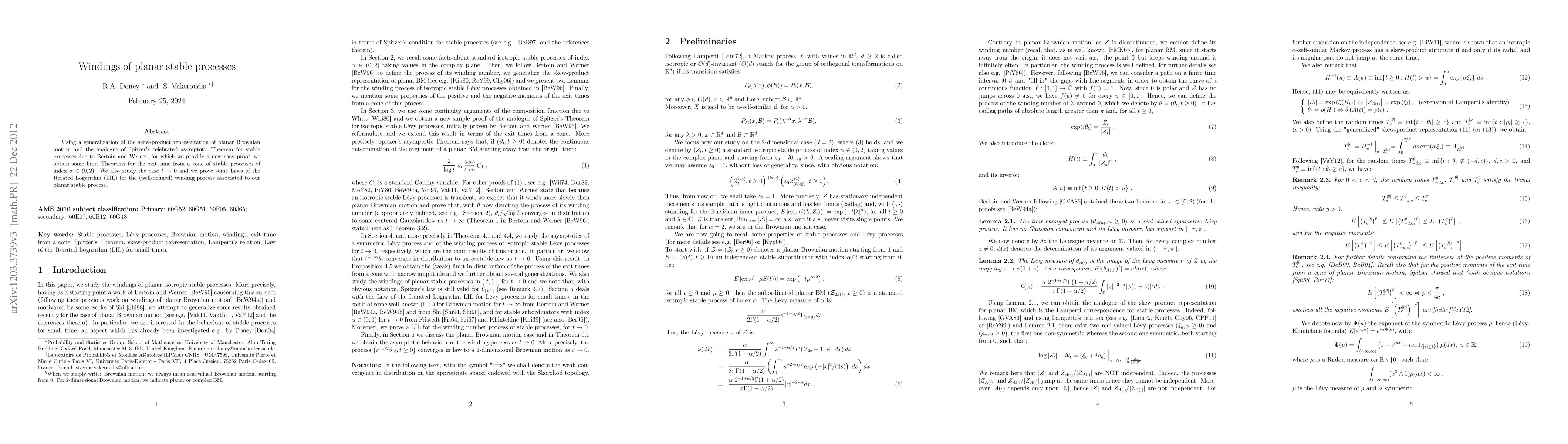 This paper generalizes the skew-product representation for planar Brownian motion and provides a new proof of Bertoin and Werner's Spitzer's Theorem for stable processes, leading to limit theorems for the exit time from a cone. It also establishes Laws of the Iterated Logarithm for the winding process associated with planar stable processes.