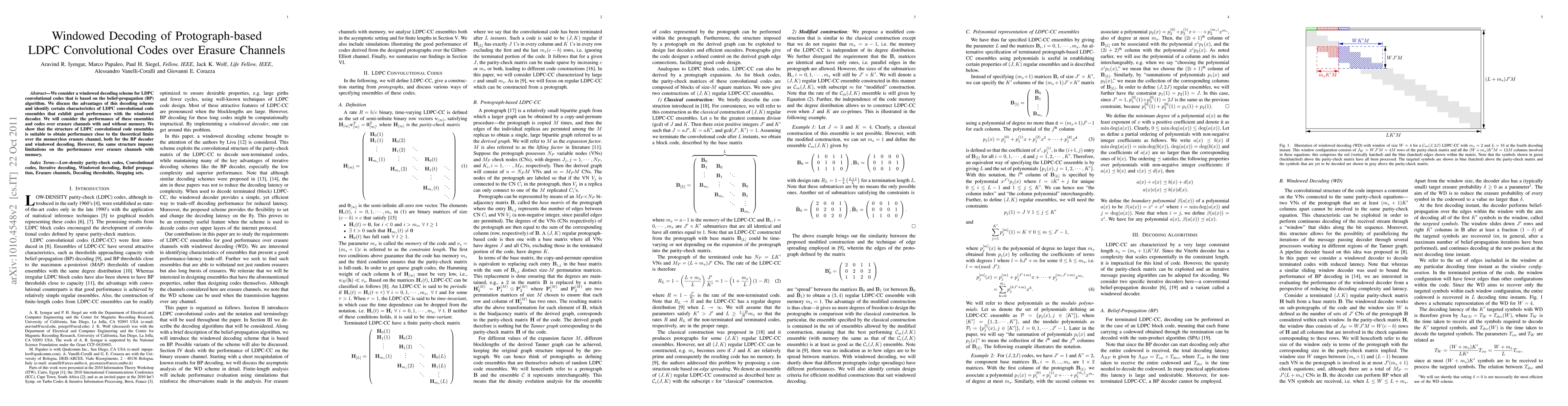 This paper explores a windowed decoding scheme for LDPC convolutional codes based on belief-propagation, demonstrating its effectiveness over memoryless erasure channels. It highlights the limitations of this structure when decoding over channels with memory.