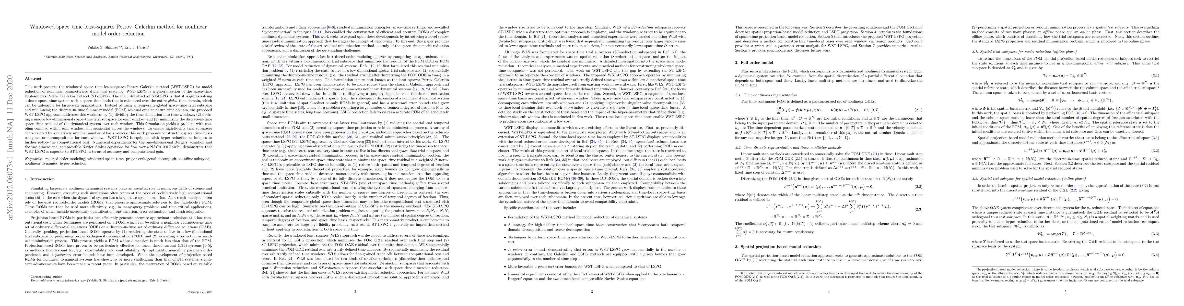The paper introduces the windowed space-time least-squares Petrov-Galerkin method (WST-LSPG) for reducing the model order of nonlinear dynamical systems. Unlike the space-time least-squares Petrov-Galerkin method (ST-LSPG), WST-LSPG divides the time domain into windows, constructs localized low-dimensional subspaces, and minimizes residuals within each window, significantly reducing computational costs.