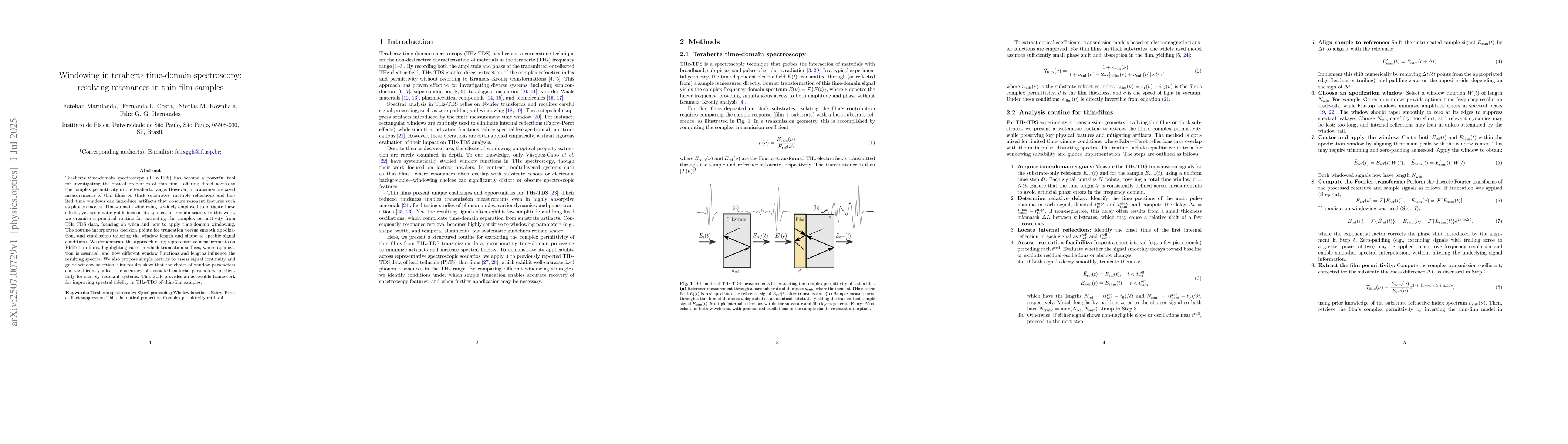 Terahertz time-domain spectroscopy (THz-TDS) has become a powerful tool for investigating the optical properties of thin films, offering direct access to the complex permittivity in the terahertz range. However, in transmission-based measurements of thin films on thick substrates, multiple reflections and limited time windows can introduce artifacts that obscure resonant features such as phonon modes. Time-domain windowing is widely employed to mitigate these effects, yet systematic guidelines on its application remain scarce. In this work, we organize a practical routine for extracting the complex permittivity from THz-TDS data, focusing on when and how to apply time-domain windowing. The routine incorporates decision points for truncation versus smooth apodization, and emphasizes tailoring the window length and shape to specific signal conditions. We demonstrate the approach using representative measurements on PbTe thin films, highlighting cases in which truncation suffices, where apodization is essential, and how different window functions and lengths influence the resulting spectra. We also propose simple metrics to assess signal continuity and guide window selection. Our results show that the choice of window parameters can significantly affect the accuracy of extracted material parameters, particularly for sharply resonant systems. This work provides an accessible framework for improving spectral fidelity in THz-TDS of thin-film samples.