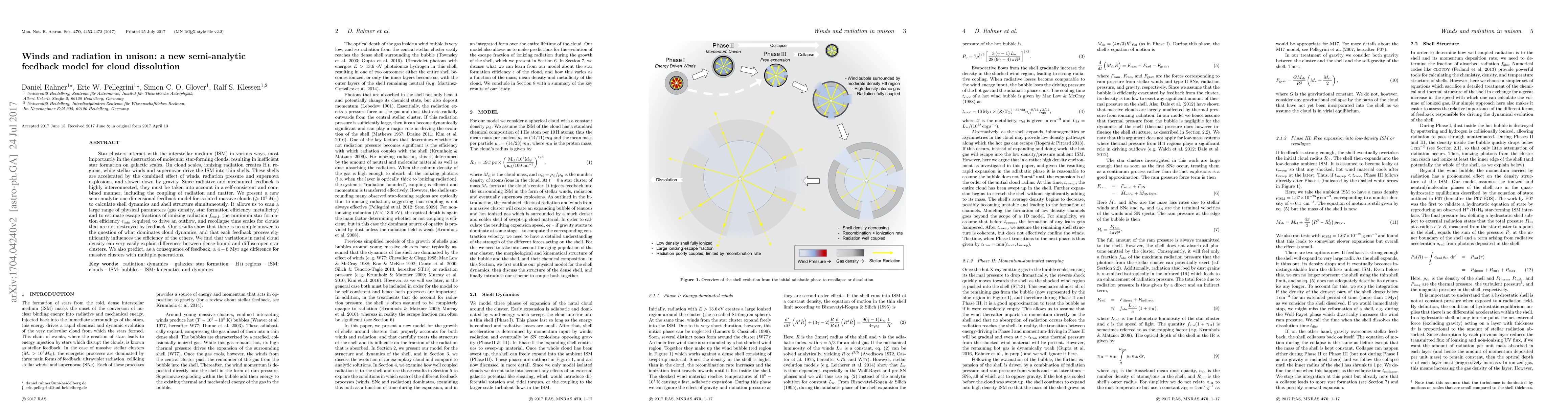 Star clusters interact with the interstellar medium (ISM) in various ways, most importantly in the destruction of molecular star-forming clouds, resulting in inefficient star formation on galactic scales. On cloud scales, ionizing radiation creates \hii regions, while stellar winds and supernovae drive the ISM into thin shells. These shells are accelerated by the combined effect of winds, radiation pressure and supernova explosions, and slowed down by gravity. Since radiative and mechanical feedback is highly interconnected, they must be taken into account in a self-consistent and combined manner, including the coupling of radiation and matter. We present a new semi-analytic one-dimensional feedback model for isolated massive clouds ($\geq 10^5\,M_{\odot}$) to calculate shell dynamics and shell structure simultaneously. It allows us to scan a large range of physical parameters (gas density, star formation efficiency, metallicity) and to estimate escape fractions of ionizing radiation $f_{\rm{esc,i}}$, the minimum star formation efficiency $\epsilon_{\rm{min}}$ required to drive an outflow, and recollapse time scales for clouds that are not destroyed by feedback. Our results show that there is no simple answer to the question of what dominates cloud dynamics, and that each feedback process significantly influences the efficiency of the others. We find that variations in natal cloud density can very easily explain differences between dense-bound and diffuse-open star clusters. We also predict, as a consequence of feedback, a $4-6$ Myr age difference for massive clusters with multiple generations.