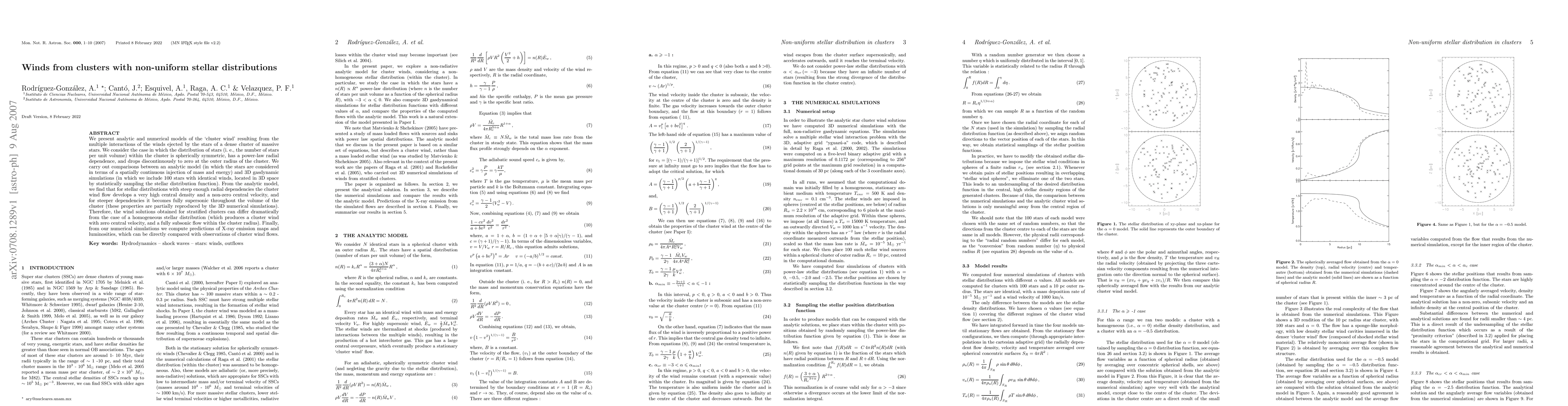 We present analytic and numerical models of the `cluster wind' resulting from the multiple interactions of the winds ejected by the stars of a dense cluster of massive stars. We consider the case in which the distribution of stars (i.e., the number of stars per unit volume) within the cluster is spherically symmetric, has a power-law radial dependence, and drops discontinuously to zero at the outer radius of the cluster. We carry out comparisons between an analytic model (in which the stars are considered in terms of a spatially continuous injection of mass and energy) and 3D gasdynamic simulations (in which we include 100 stars with identical winds, located in 3D space by statistically sampling the stellar distribution function). From the analytic model, we find that for stellar distributions with steep enough radial dependencies the cluster wind flow develops a very high central density and a non-zero central velocity, and for steeper dependencies it becomes fully supersonic throughout the volume of the cluster (these properties are partially reproduced by the 3D numerical simulations). Therefore, the wind solutions obtained for stratified clusters can differ dramatically from the case of a homogeneous stellar distribution (which produces a cluster wind with zero central velocity, and a fully subsonic flow within the cluster radius). Finally, from our numerical simulations we compute predictions of X-ray emission maps and luminosities, which can be directly compared with observations of cluster wind flows.
