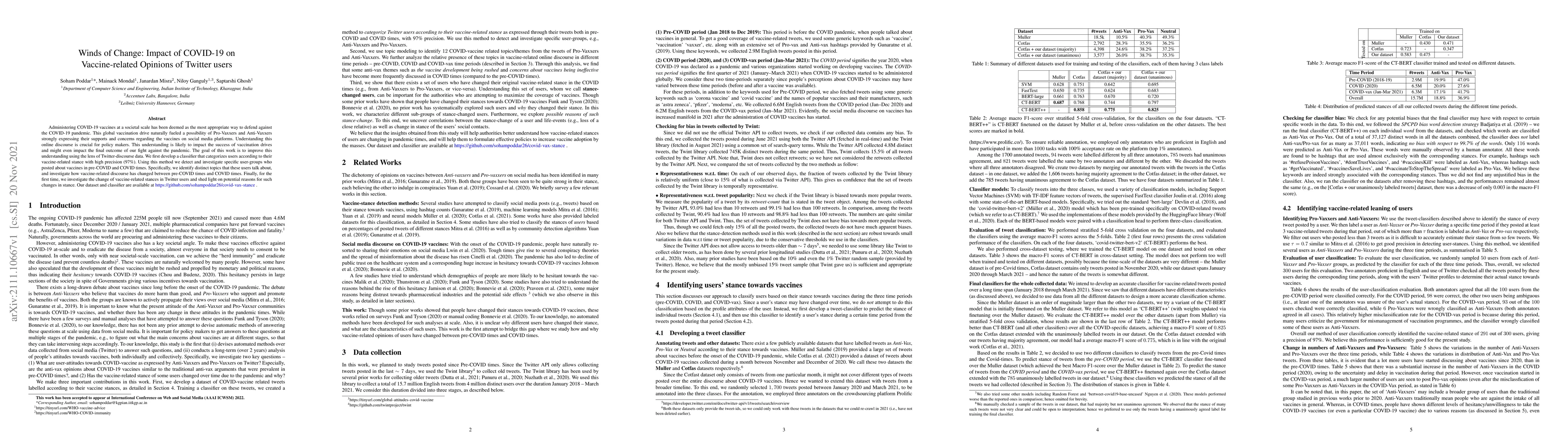 Administering COVID-19 vaccines at a societal scale has been deemed as the most appropriate way to defend against the COVID-19 pandemic. This global vaccination drive naturally fueled a possibility of Pro-Vaxxers and Anti-Vaxxers strongly expressing their supports and concerns regarding the vaccines on social media platforms. Understanding this online discourse is crucial for policy makers. This understanding is likely to impact the success of vaccination drives and might even impact the final outcome of our fight against the pandemic. The goal of this work is to improve this understanding using the lens of Twitter-discourse data. We first develop a classifier that categorizes users according to their vaccine-related stance with high precision (97%). Using this method we detect and investigate specific user-groups who posted about vaccines in pre-COVID and COVID times. Specifically, we identify distinct topics that these users talk about, and investigate how vaccine-related discourse has changed between pre-COVID times and COVID times. Finally, for the first time, we investigate the change of vaccine-related stances in Twitter users and shed light on potential reasons for such changes in stance. Our dataset and classifier are available at https://github.com/sohampoddar26/covid-vax-stance.