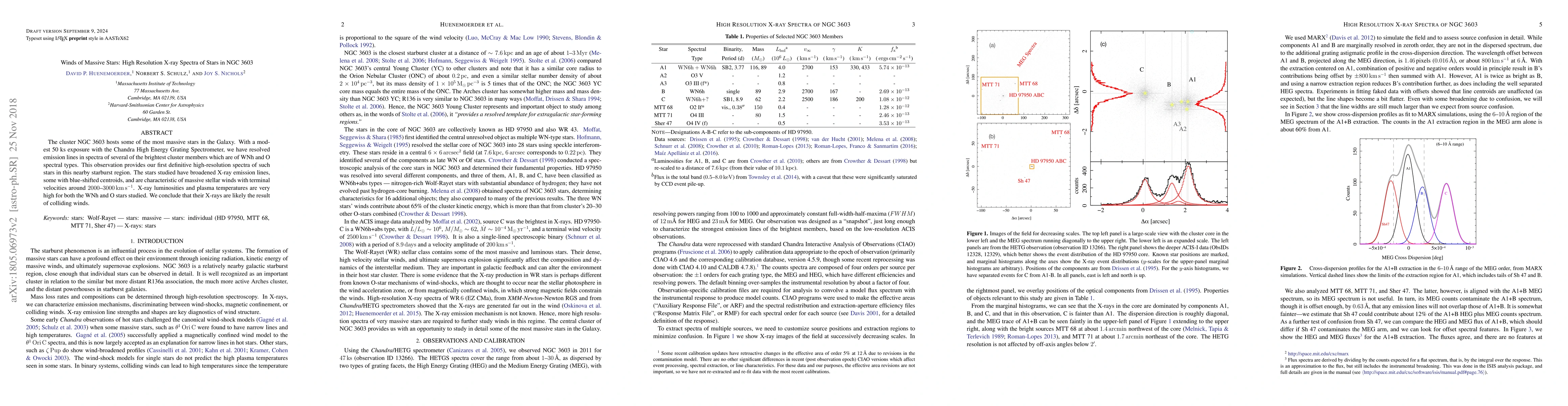 Researchers observed high-resolution X-ray spectra of massive stars in NGC 3603 cluster, revealing broadened emission lines with blue-shifted centroids, indicating colliding winds.