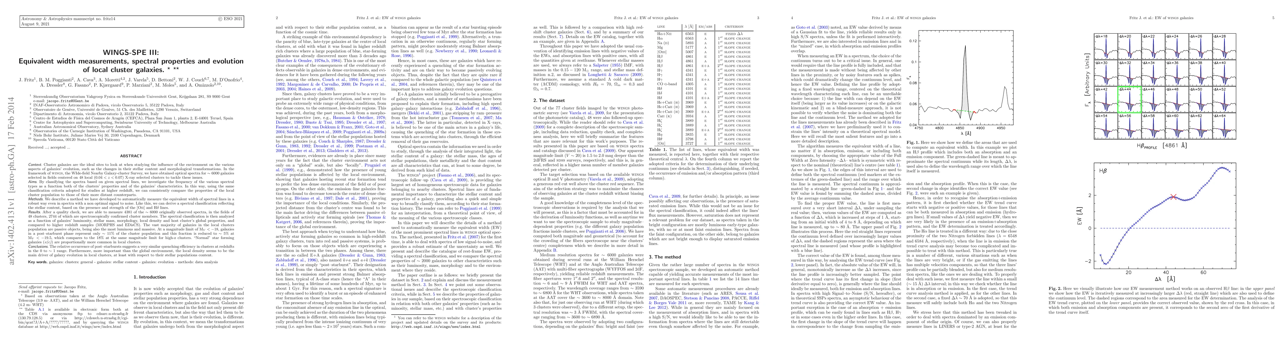 [Abridged] We investigate the frequency of the various spectral types as a function both of the clusters' properties and of the galaxies' characteristics. In this way, using the same classification criteria adopted for higher redshift studies, we can consistently compare the properties of the local cluster population to those of their more distant counterparts. We describe a method we have developed to automatically measure the equivalent width of spectral lines in a robust way even in spectra with a non optimal signal to noise. Like this, we can derive a spectral classification reflecting the stellar content, based on the presence and strength of the [OII] and Hdelta lines. We are able to measure 4381 of the ~6000 originally observed spectra, in the fields of 48 clusters, 2744 of which are spectroscopically confirmed cluster members. The spectral classification is then analyzed as a function of galaxies' luminosity, stellar mass, morphology, local density and host cluster's global properties, and compared to higher redshift samples (MORPHS and EDisCS). The vast majority of galaxies in the local clusters population are passive objects, being also the most luminous and massive. At a magnitude limit of Mv<-18, galaxies in a post-starburst phase represent only ~11% of the cluster population and this fraction is reduced to ~5% at Mv<-19.5, which compares to the 18% at the same magnitude limit for high-z clusters. "Normal" star forming galaxies [e( c )] are proportionally more common in local clusters. The relative occurrence of post--starbursts suggests a very similar quenching efficiency in clusters at redshifts in the 0 to ~1 range. Furthermore, more important than the global environment, the local density seems to be the main driver of galaxy evolution in local clusters, at least with respect to their stellar populations content.