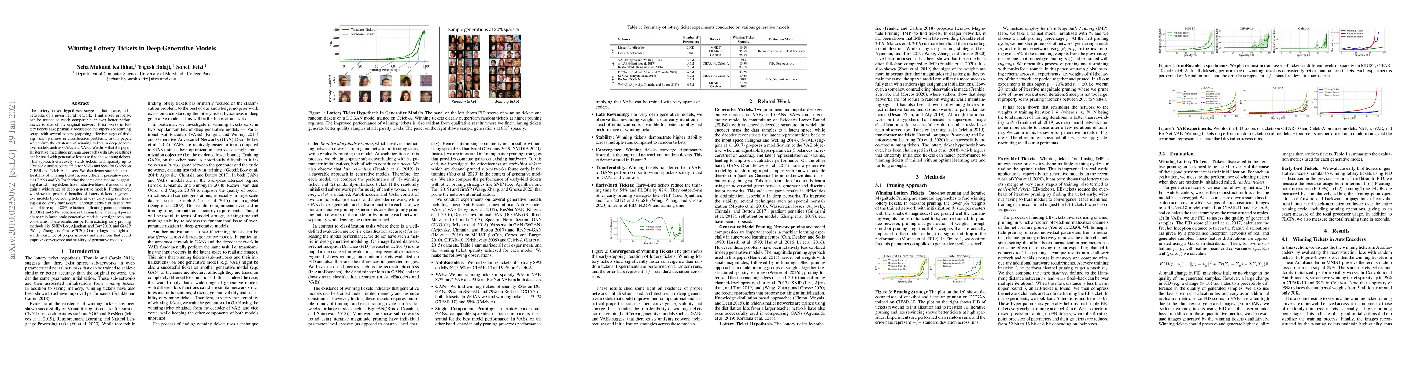 This paper confirms the existence of winning tickets in deep generative models like GANs and VAEs, demonstrating that iterative magnitude pruning can identify sparse sub-networks that perform comparably to the original models. Early-bird tickets enable significant reductions in computational costs, outperforming existing early pruning methods.