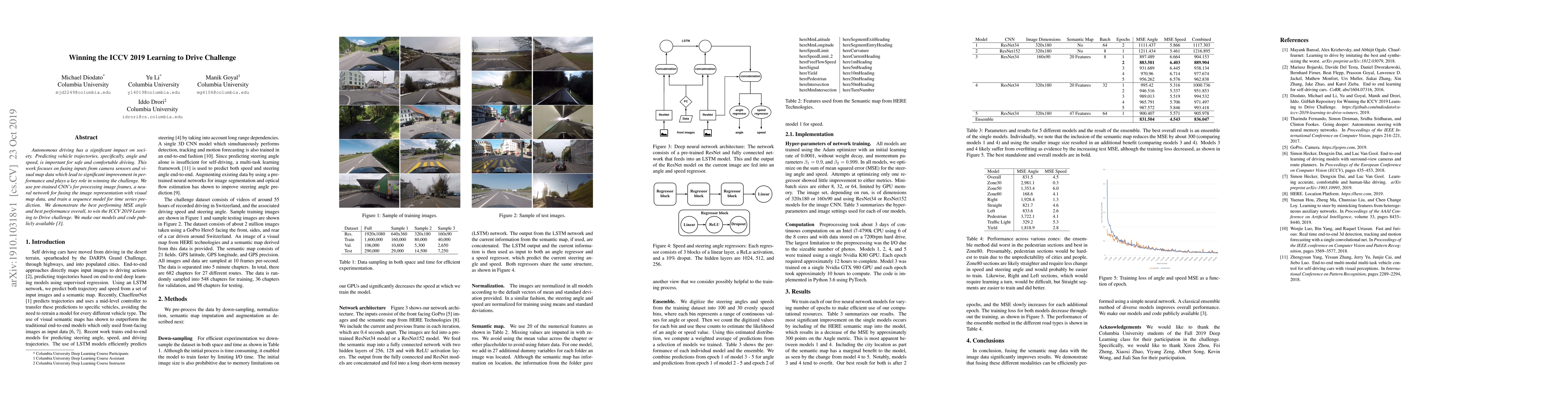 Autonomous driving has a significant impact on society. Predicting vehicle trajectories, specifically, angle and speed, is important for safe and comfortable driving. This work focuses on fusing inputs from camera sensors and visual map data which lead to significant improvement in performance and plays a key role in winning the challenge. We use pre-trained CNN's for processing image frames, a neural network for fusing the image representation with visual map data, and train a sequence model for time series prediction. We demonstrate the best performing MSE angle and best performance overall, to win the ICCV 2019 Learning to Drive challenge. We make our models and code publicly available.