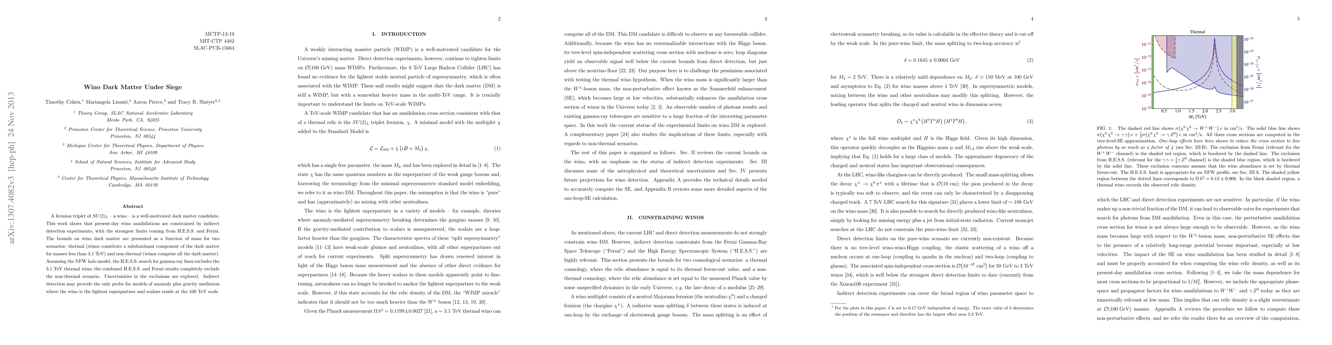 A fermion triplet of SU(2)_L - a wino - is a well-motivated dark matter candidate. This work shows that present-day wino annihilations are constrained by indirect detection experiments, with the strongest limits coming from H.E.S.S. and Fermi. The bounds on wino dark matter are presented as a function of mass for two scenarios: thermal (winos constitute a subdominant component of the dark matter for masses less than 3.1 TeV) and non-thermal (winos comprise all the dark matter). Assuming the NFW halo model, the H.E.S.S. search for gamma-ray lines excludes the 3.1 TeV thermal wino; the combined H.E.S.S. and Fermi results completely exclude the non-thermal scenario. Uncertainties in the exclusions are explored. Indirect detection may provide the only probe for models of anomaly plus gravity mediation where the wino is the lightest superpartner and scalars reside at the 100 TeV scale.