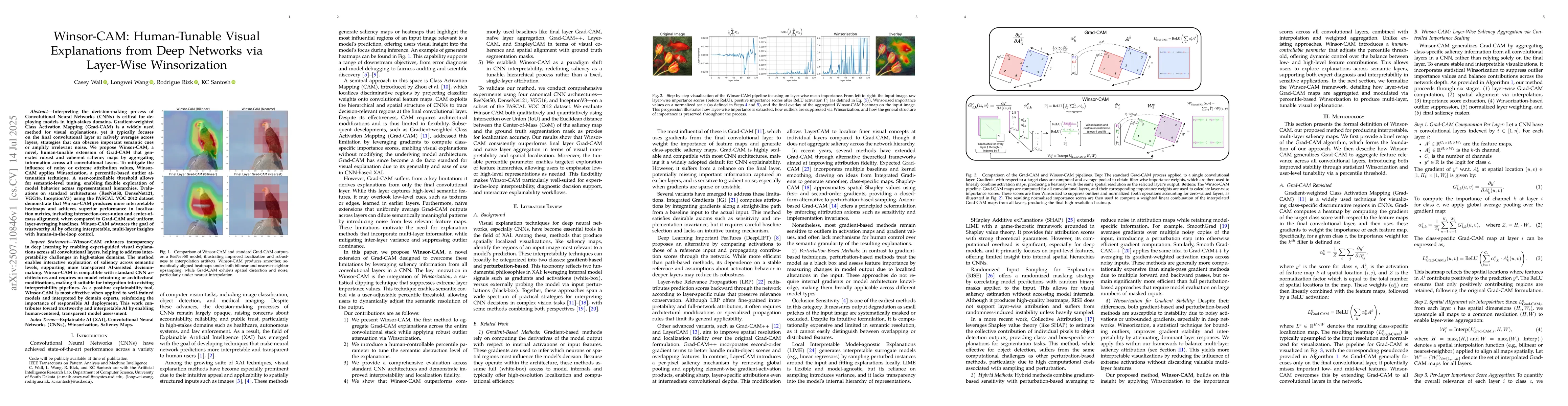 Interpreting the decision-making process of Convolutional Neural Networks (CNNs) is critical for deploying models in high-stakes domains. Gradient-weighted Class Activation Mapping (Grad-CAM) is a widely used method for visual explanations, yet it typically focuses on the final convolutional layer or na\"ively averages across layers, strategies that can obscure important semantic cues or amplify irrelevant noise. We propose Winsor-CAM, a novel, human-tunable extension of Grad-CAM that generates robust and coherent saliency maps by aggregating information across all convolutional layers. To mitigate the influence of noisy or extreme attribution values, Winsor-CAM applies Winsorization, a percentile-based outlier attenuation technique. A user-controllable threshold allows for semantic-level tuning, enabling flexible exploration of model behavior across representational hierarchies. Evaluations on standard architectures (ResNet50, DenseNet121, VGG16, InceptionV3) using the PASCAL VOC 2012 dataset demonstrate that Winsor-CAM produces more interpretable heatmaps and achieves superior performance in localization metrics, including intersection-over-union and center-of-mass alignment, when compared to Grad-CAM and uniform layer-averaging baselines. Winsor-CAM advances the goal of trustworthy AI by offering interpretable, multi-layer insights with human-in-the-loop control.