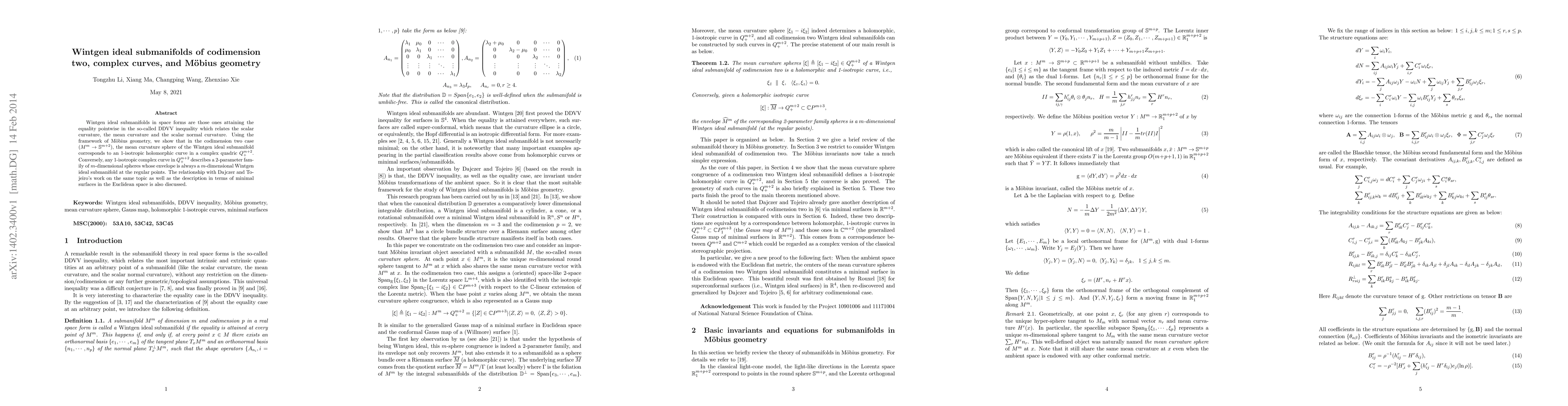 This paper explores Wintgen ideal submanifolds in space forms, demonstrating that in codimension two, their mean curvature sphere corresponds to a 1-isotropic holomorphic curve in a complex quadric Q. Conversely, any such curve describes a family of spheres whose envelope forms a Wintgen ideal submanifold at regular points.