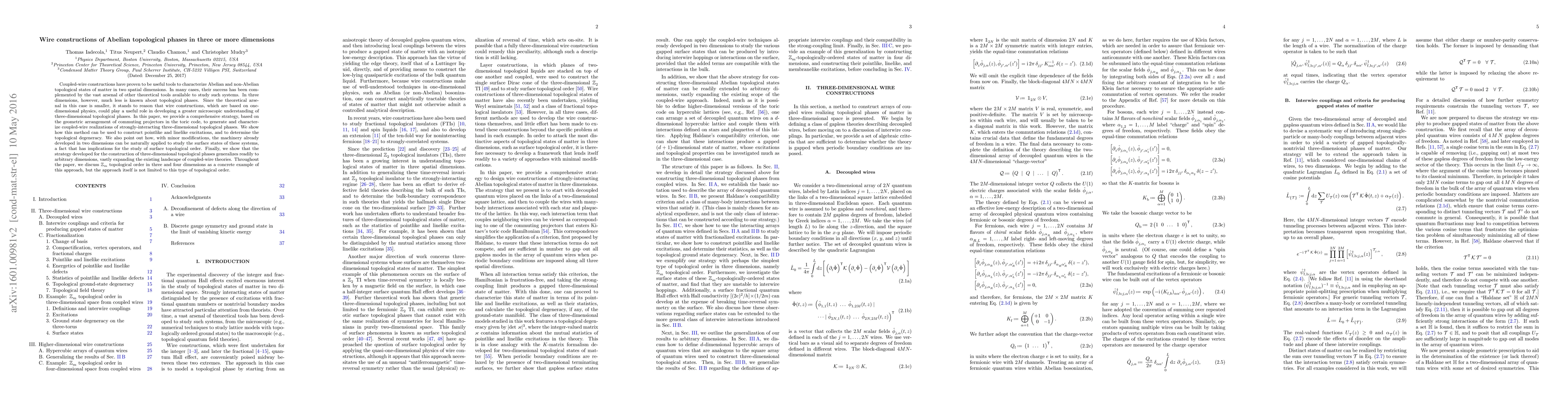 Coupled-wire constructions have proven to be useful tools to characterize Abelian and non-Abelian topological states of matter in two spatial dimensions. In many cases, their success has been complemented by the vast arsenal of other theoretical tools available to study such systems. In three dimensions, however, much less is known about topological phases. Since the theoretical arsenal in this case is smaller, it stands to reason that wire constructions, which are based on one-dimensional physics, could play a useful role in developing a greater microscopic understanding of three-dimensional topological phases. In this paper, we provide a comprehensive strategy, based on the geometric arrangement of commuting projectors in the toric code, to generate and characterize coupled-wire realizations of strongly-interacting three-dimensional topological phases. We show how this method can be used to construct pointlike and linelike excitations, and to determine the topological degeneracy. We also point out how, with minor modifications, the machinery already developed in two dimensions can be naturally applied to study the surface states of these systems, a fact that has implications for the study of surface topological order. Finally, we show that the strategy developed for the construction of three-dimensional topological phases generalizes readily to arbitrary dimensions, vastly expanding the existing landscape of coupled-wire theories. Throughout the paper, we discuss $\mathbb{Z}^{\,}_m$ topological order in three and four dimensions as a concrete example of this approach, but the approach itself is not limited to this type of topological order.