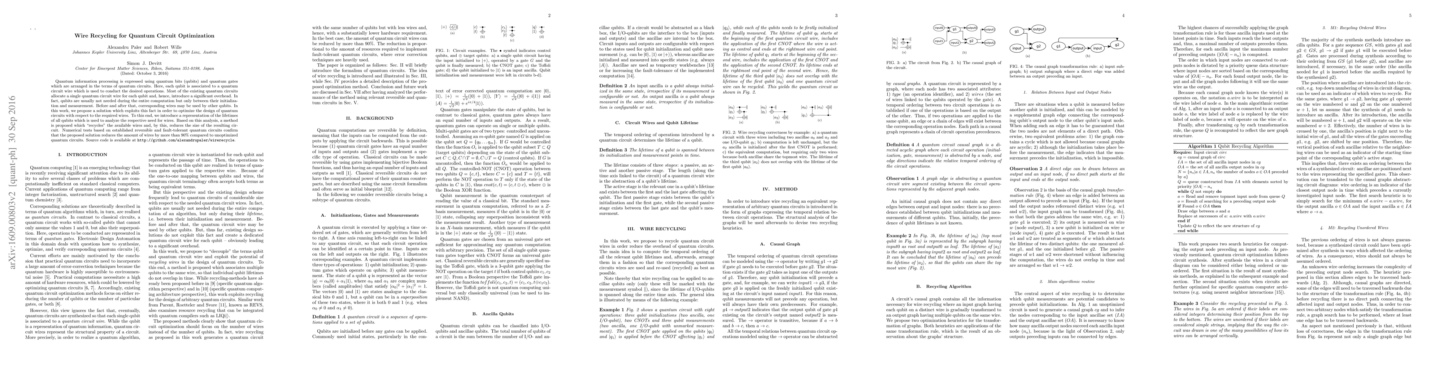 This paper proposes a method to optimize quantum circuit designs by recycling unused quantum circuit wires, reducing the number of required wires by over 90% compared to traditional circuits. The approach analyzes qubit lifetimes to efficiently allocate and reuse wires, enhancing circuit efficiency.