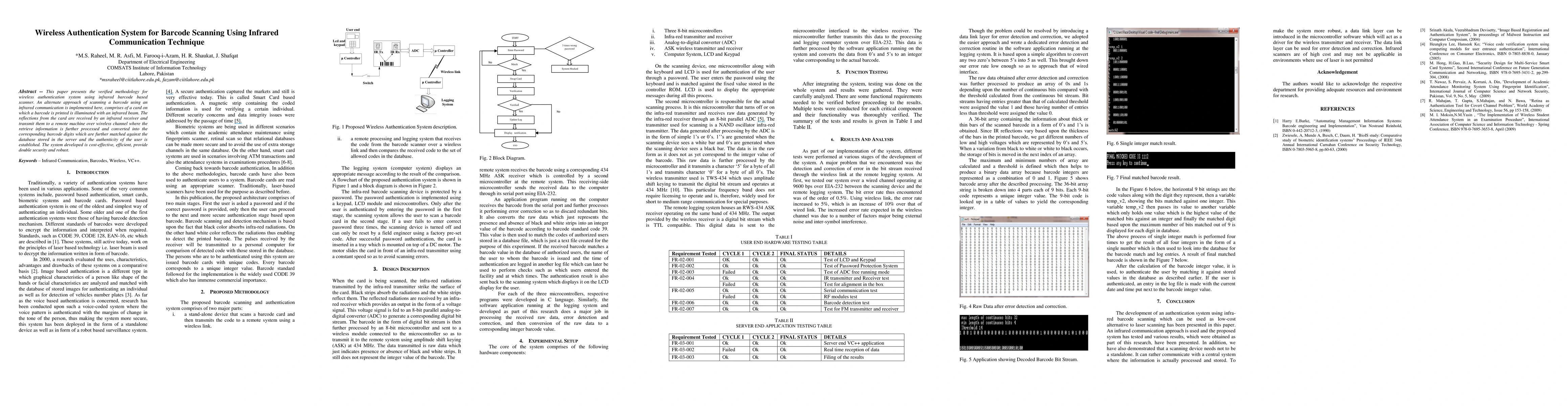 This paper proposes a wireless authentication system using infrared barcode scanning, providing cost-effectiveness, efficiency, double security, and robustness.