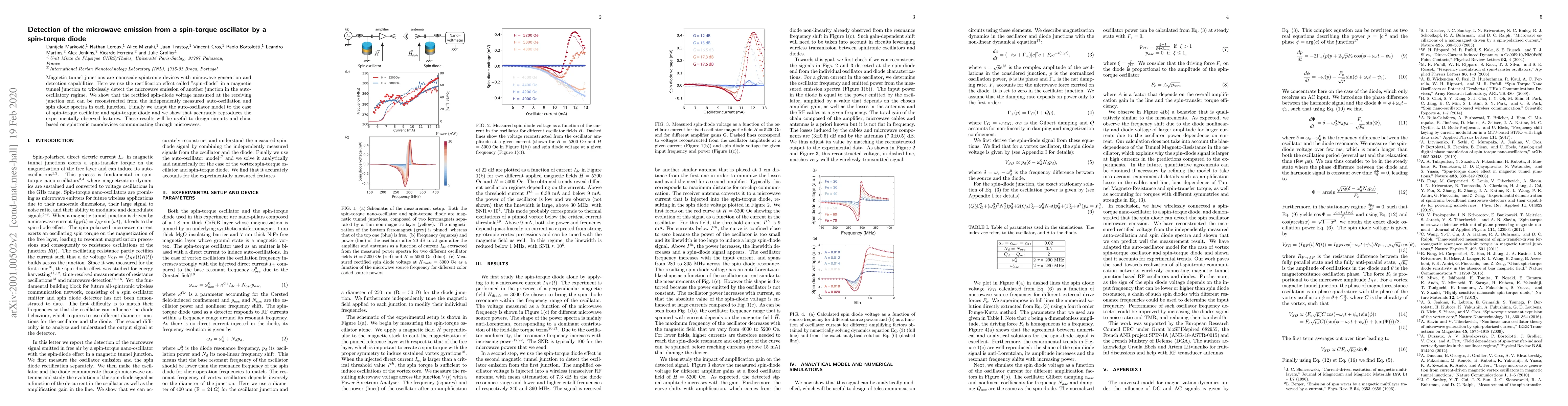 This paper explores wireless communication using magnetic tunnel junctions, where one junction acts as an oscillator and another as a diode. It demonstrates the detection of microwave emissions via the "spin-diode" rectification effect, showing that the received signal can be reconstructed from the oscillator and diode spectra.