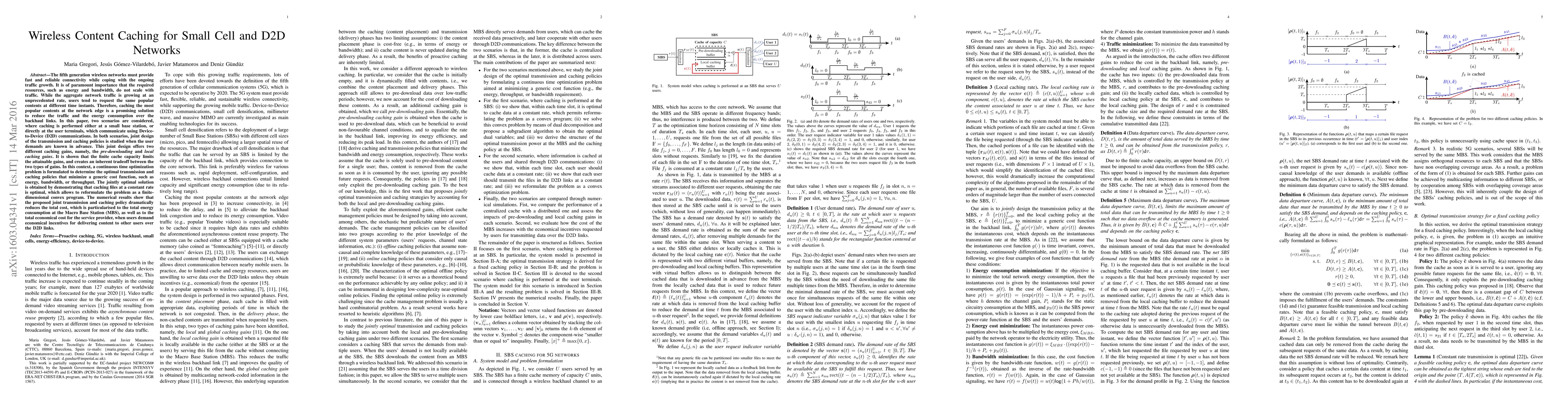 This paper explores wireless content caching strategies for small cell and D2D networks, aiming to optimize resource usage and reduce traffic growth. It studies caching at small base stations and user terminals, formulating an optimization problem to minimize costs like energy and bandwidth, and demonstrating significant reductions in total cost and energy consumption.