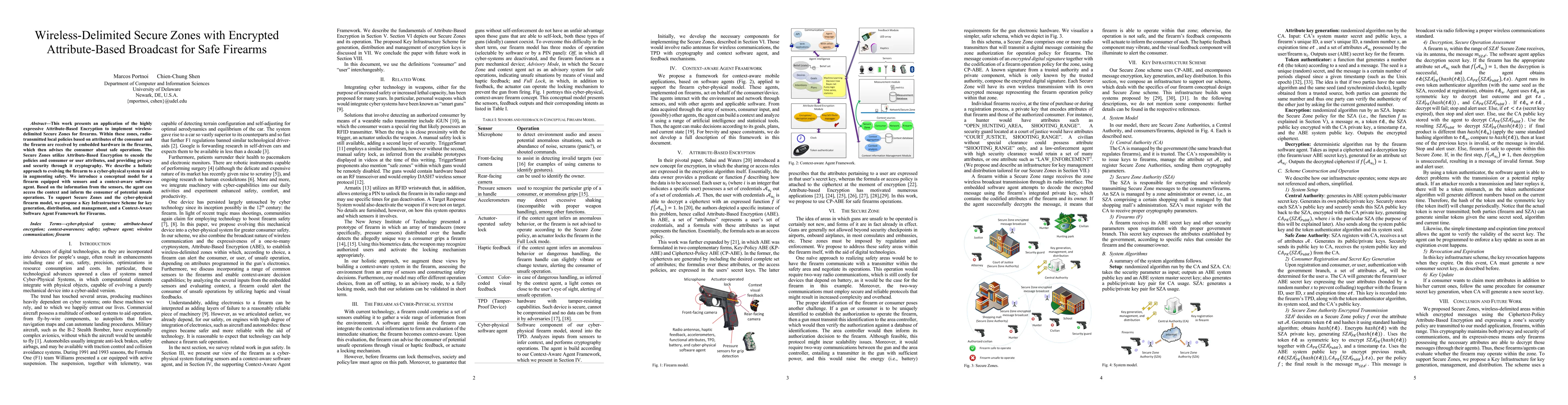 This work presents an application of the highly expressive Attribute-Based Encryption to implement wireless-delimited Secure Zones for firearms. Within these zones, radio-transmitted local policies based on attributes of the consumer and the firearm are received by embedded hardware in the firearms, which then advises the consumer about safe operations. The Secure Zones utilize Attribute-Based Encryption to encode the policies and consumer or user attributes, and providing privacy and security through it cryptography. We describe a holistic approach to evolving the firearm to a cyber-physical system to aid in augmenting safety. We introduce a conceptual model for a firearm equipped with sensors and a context-aware software agent. Based on the information from the sensors, the agent can access the context and inform the consumer of potential unsafe operations. To support Secure Zones and the cyber-physical firearm model, we propose a Key Infrastructure Scheme for key generation, distribution, and management, and a Context-Aware Software Agent Framework for Firearms.