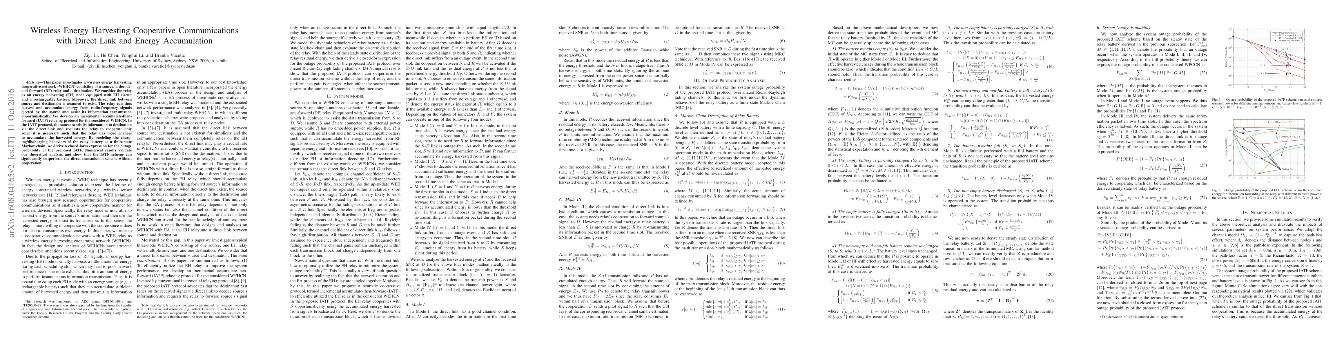 This paper explores a wireless energy harvesting cooperative network (WEHCN) with a source, a DF relay, and a destination, where the relay harvests energy from the source and uses an incremental accumulate-then-forward (IATF) protocol to assist information transmission. The study derives a closed-form expression for the outage probability of the IATF protocol, demonstrating its superior performance over direct transmission.