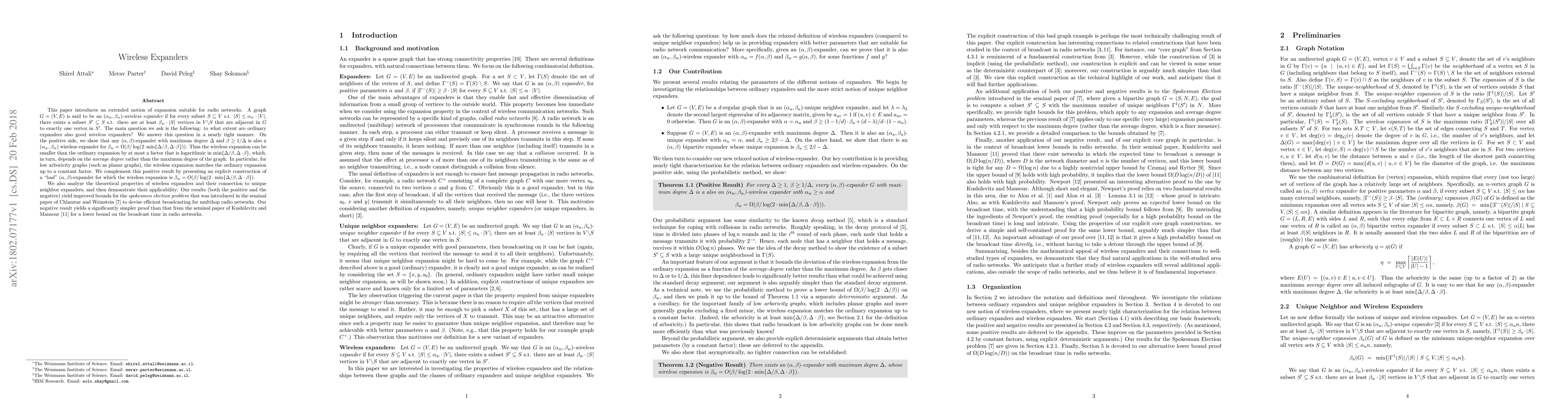 This paper introduces an extended notion of expansion suitable for radio networks. A graph $G=(V,E)$ is called an $(\alpha_w, \beta_w)$-{wireless expander} if for every subset $S \subseteq V$ s.t. $|S|\leq \alpha_w \cdot |V|$, there exists a subset $S'\subseteq S$ s.t. there are at least $\beta_w \cdot |S|$ vertices in $V\backslash S$ adjacent in $G$ to exactly one vertex in $S'$. The main question we ask is the following: to what extent are ordinary expanders also good {wireless} expanders? We answer this question in a nearly tight manner. On the positive side, we show that any $(\alpha, \beta)$-expander with maximum degree $\Delta$ and $\beta\geq 1/\Delta$ is also a $(\alpha_w, \beta_w)$ wireless expander for $\beta_w = \Omega(\beta / \log (2 \cdot \min\{\Delta / \beta, \Delta \cdot \beta\}))$. Thus the wireless expansion is smaller than the ordinary expansion by at most a factor logarithmic in $\min\{\Delta / \beta, \Delta \cdot \beta\}$, which depends on the graph \emph{average degree} rather than maximum degree; e.g., for low arboricity graphs, the wireless expansion matches the ordinary expansion up to a constant. We complement this positive result by presenting an explicit construction of a "bad" $(\alpha, \beta)$-expander for which the wireless expansion is $\beta_w = O(\beta / \log (2 \cdot \min\{\Delta / \beta, \Delta \cdot \beta\})$. We also analyze the theoretical properties of wireless expanders and their connection to unique neighbor expanders, and demonstrate their applicability: Our results yield improved bounds for the {spokesmen election problem} that was introduced in the seminal paper of Chlamtac and Weinstein (1991) to devise efficient broadcasting for multihop radio networks. Our negative result yields a significantly simpler proof than that from the seminal paper of Kushilevitz and Mansour (1998) for a lower bound on the broadcast time in radio networks.