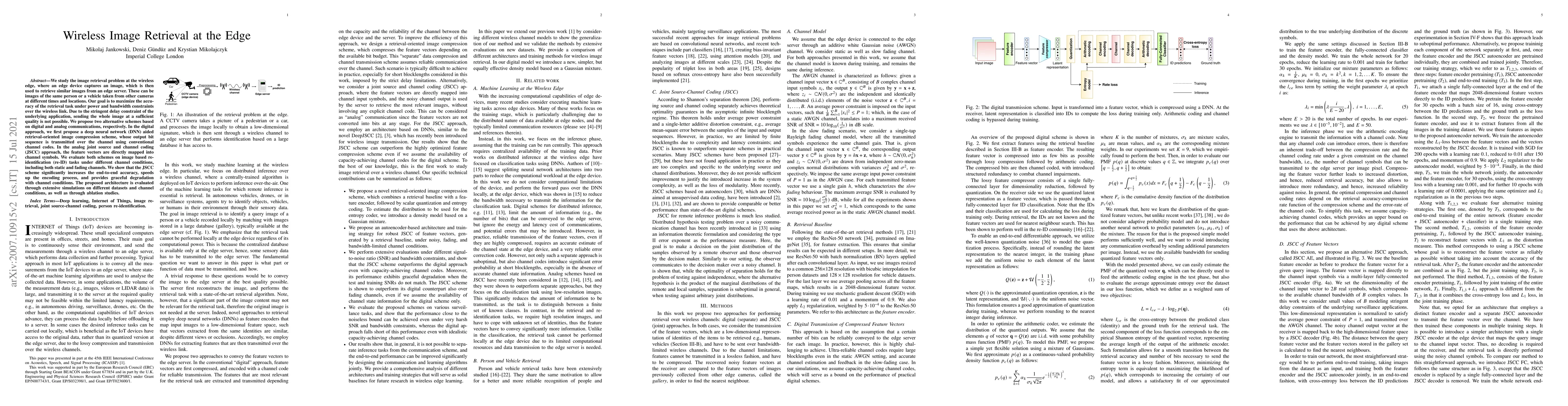 Researchers propose two wireless image retrieval schemes: a digital approach using deep neural networks for compression and an analog joint source and channel coding (JSCC) scheme that directly maps feature vectors into channel symbols, achieving higher end-to-end accuracy.