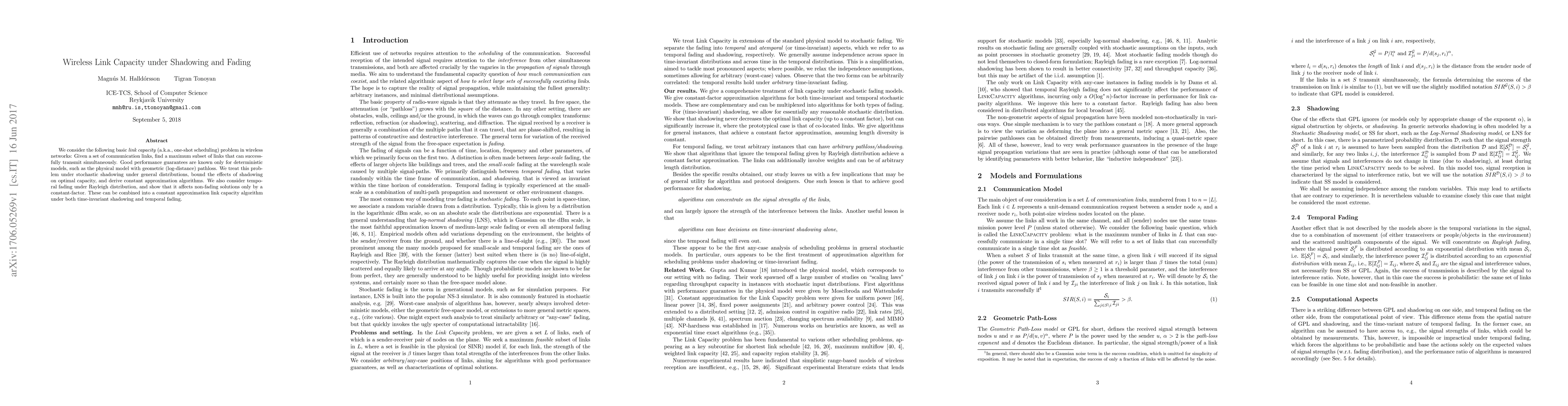 This paper addresses the wireless link capacity problem under stochastic shadowing and temporal fading, developing algorithms to maximize simultaneous transmissions. It provides constant approximation solutions for both shadowing and fading effects, and combines them for a unified approach.