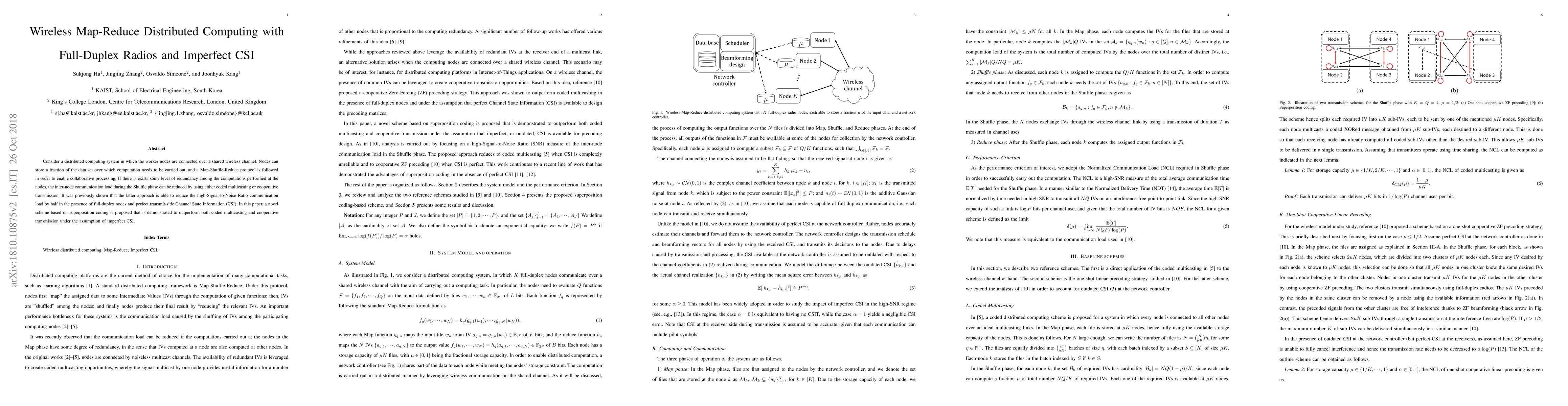 Consider a distributed computing system in which the worker nodes are connected over a shared wireless channel. Nodes can store a fraction of the data set over which computation needs to be carried out, and a Map-Shuffle-Reduce protocol is followed in order to enable collaborative processing. If there is exists some level of redundancy among the computations performed at the nodes, the inter-node communication load during the Shuffle phase can be reduced by using either coded multicasting or cooperative transmission. It was previously shown that the latter approach is able to reduce the high-Signal-to-Noise Ratio communication load by half in the presence of full-duplex nodes and perfect transmit-side Channel State Information (CSI). In this paper, a novel scheme based on superposition coding is proposed that is demonstrated to outperform both coded multicasting and cooperative transmission under the assumption of imperfect CSI.