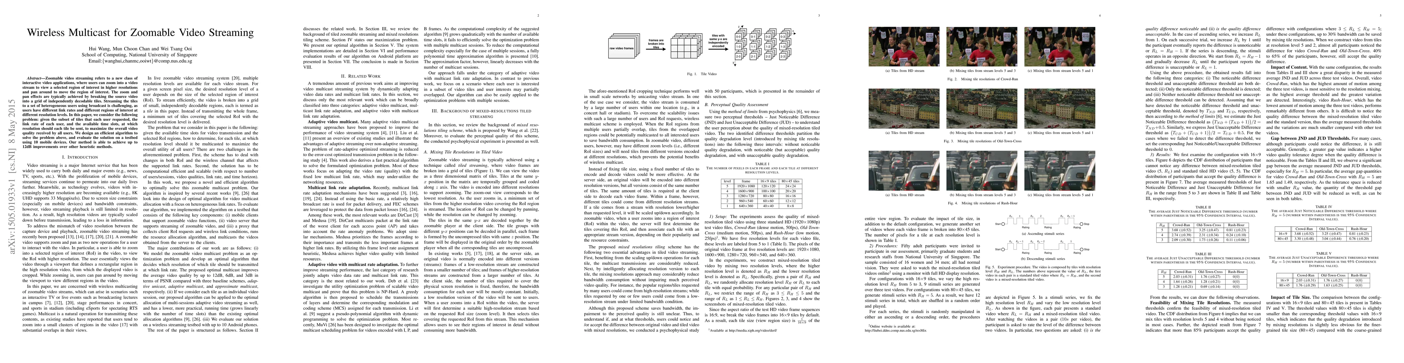 Zoomable video streaming refers to a new class of interactive video applications, where users can zoom into a video stream to view a selected region of interest in higher resolutions and pan around to move the region of interest. The zoom and pan effects are typically achieved by breaking the source video into a grid of independently decodable tiles. Streaming the tiles to a set of heterogeneous users using broadcast is challenging, as users have different link rates and different regions of interest at different resolution levels. In this paper, we consider the following problem: given the subset of tiles that each user requested, the link rate of each user, and the available time slots, at which resolution should each tile be sent, to maximize the overall video quality received by all users. We design an efficient algorithm to solve the problem above, and evaluate the solution on a testbed using 10 mobile devices. Our method is able to achieve up to 12dB improvements over other heuristic methods.
