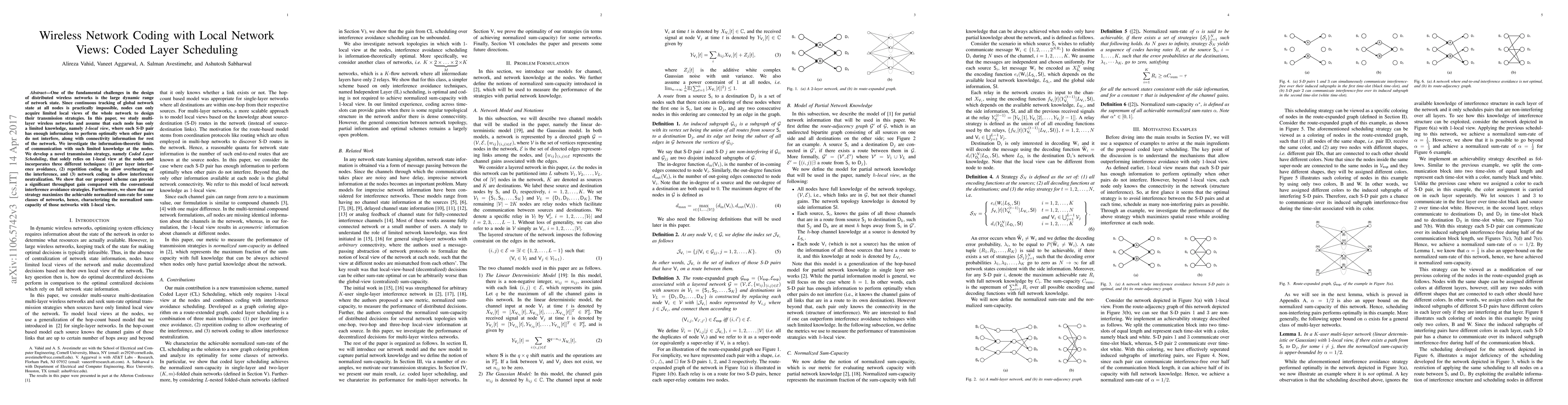 One of the fundamental challenges in the design of distributed wireless networks is the large dynamic range of network state. Since continuous tracking of global network state at all nodes is practically impossible, nodes can only acquire limited local views of the whole network to design their transmission strategies. In this paper, we study multi-layer wireless networks and assume that each node has only a limited knowledge, namely 1-local view, where each S-D pair has enough information to perform optimally when other pairs do not interfere, along with connectivity information for rest of the network. We investigate the information-theoretic limits of communication with such limited knowledge at the nodes. We develop a novel transmission strategy, namely Coded Layer Scheduling, that solely relies on 1-local view at the nodes and incorporates three different techniques: (1) per layer interference avoidance, (2) repetition coding to allow overhearing of the interference, and (3) network coding to allow interference neutralization. We show that our proposed scheme can provide a significant throughput gain compared with the conventional interference avoidance strategies. Furthermore, we show that our strategy maximizes the achievable normalized sum-rate for some classes of networks, hence, characterizing the normalized sum-capacity of those networks with 1-local view.