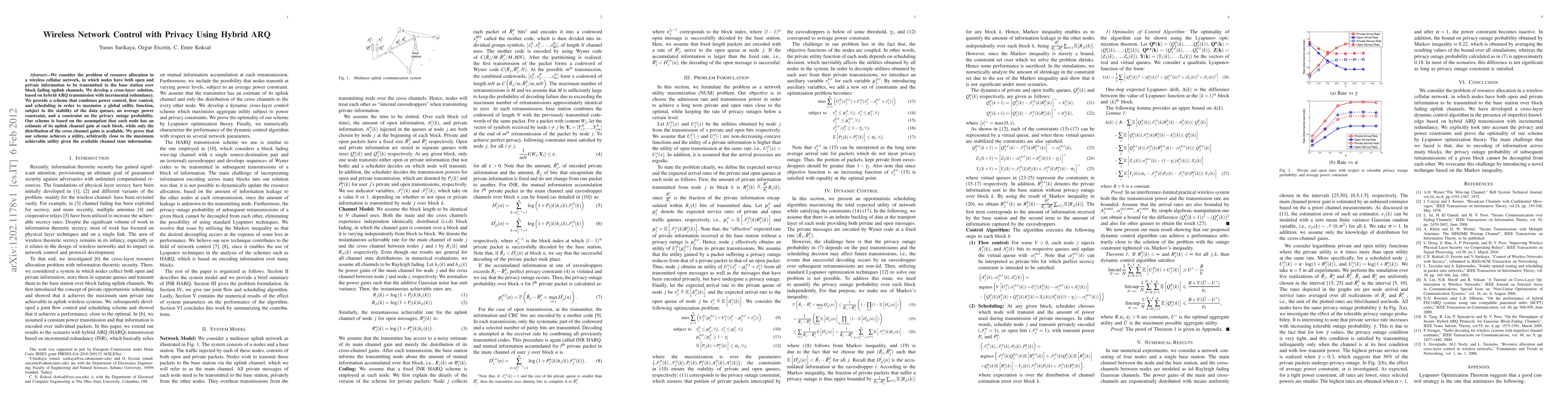 Researchers developed a cross-layer solution for wireless network control that balances utility, power, and privacy constraints using hybrid ARQ transmission. The scheme achieves near-maximal utility while ensuring data queue stability and minimizing private information exposure.
