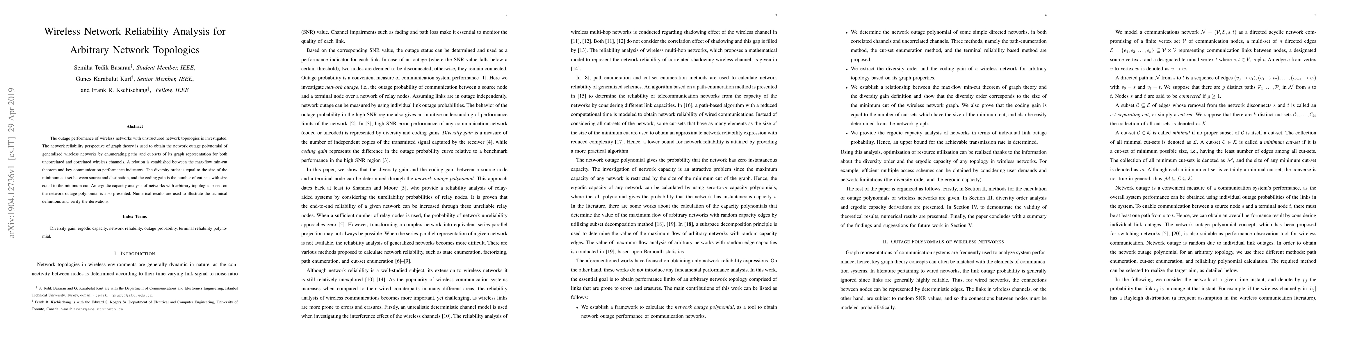 Researchers analyzed wireless network reliability for networks with arbitrary topologies using graph theory, finding a connection between max-flow min-cut theorem and key performance indicators like diversity order and coding gain. The study provides insights into ergodic capacity analysis for such networks.