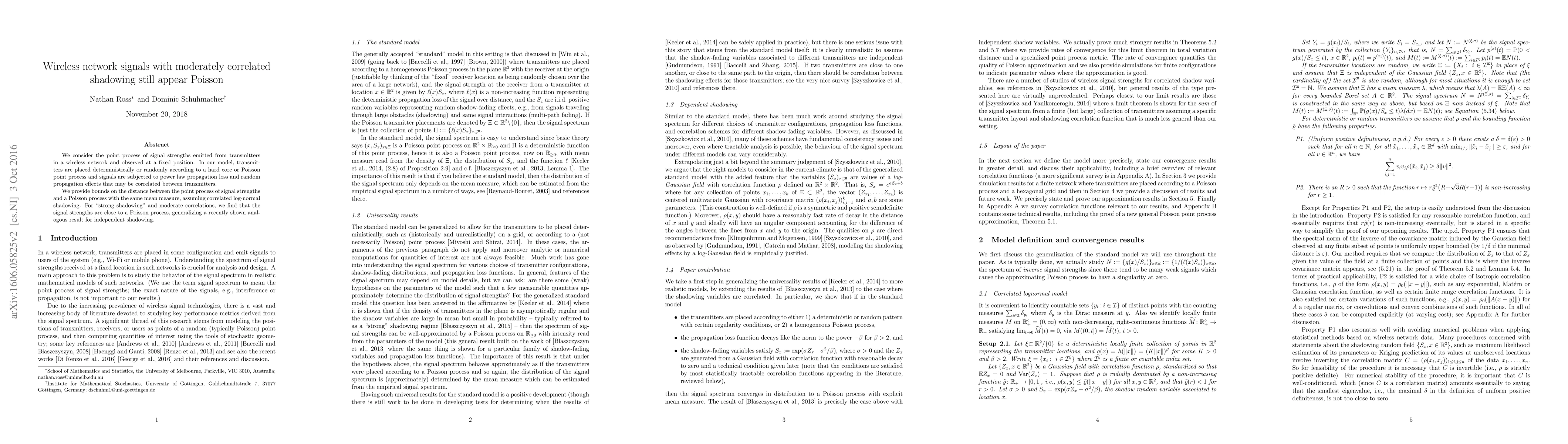 The work extends existing results on Poisson approximations in wireless networks to include correlated log-normal shadowing, providing a more realistic model for network analysis.