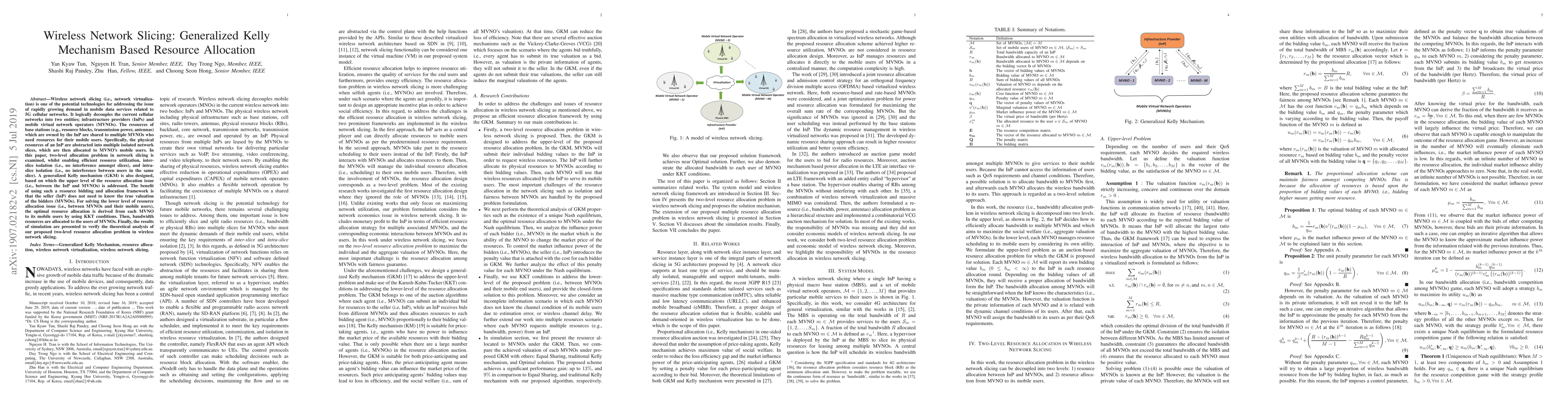 This paper explores wireless network slicing for 5G cellular networks, proposing a two-level resource allocation method using a generalized Kelly mechanism to efficiently share base station resources between infrastructure providers and mobile virtual network operators. Simulation results validate the effectiveness of the proposed resource bidding and allocation framework.