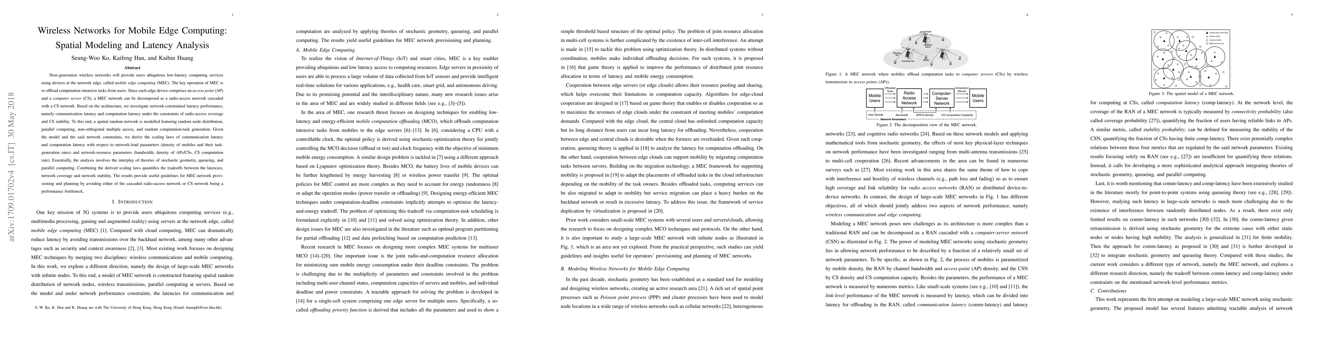 This paper models and analyzes the latency performance of wireless networks for mobile edge computing (MEC), focusing on communication and computation latency under network constraints. It derives scaling laws for these latencies based on network-load and resource parameters, providing insights for effective MEC network planning.