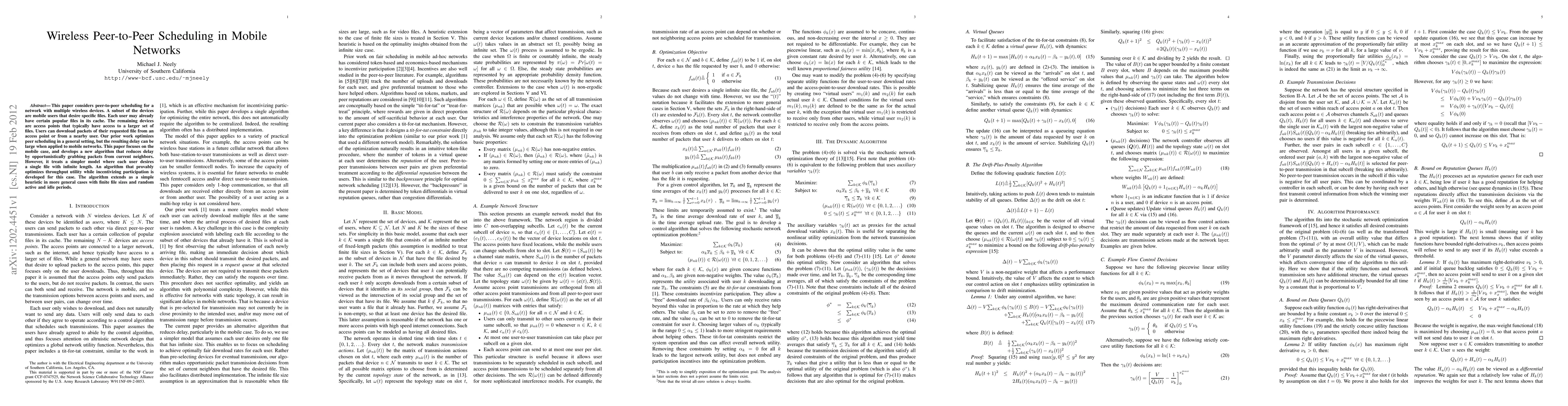 This paper develops a new algorithm for wireless peer-to-peer scheduling in mobile networks to reduce delay by opportunistically grabbing packets from neighbors, optimizing throughput while incentivizing participation for a single-file scenario. It extends as a heuristic for more complex cases with finite file sizes and varying user activity.