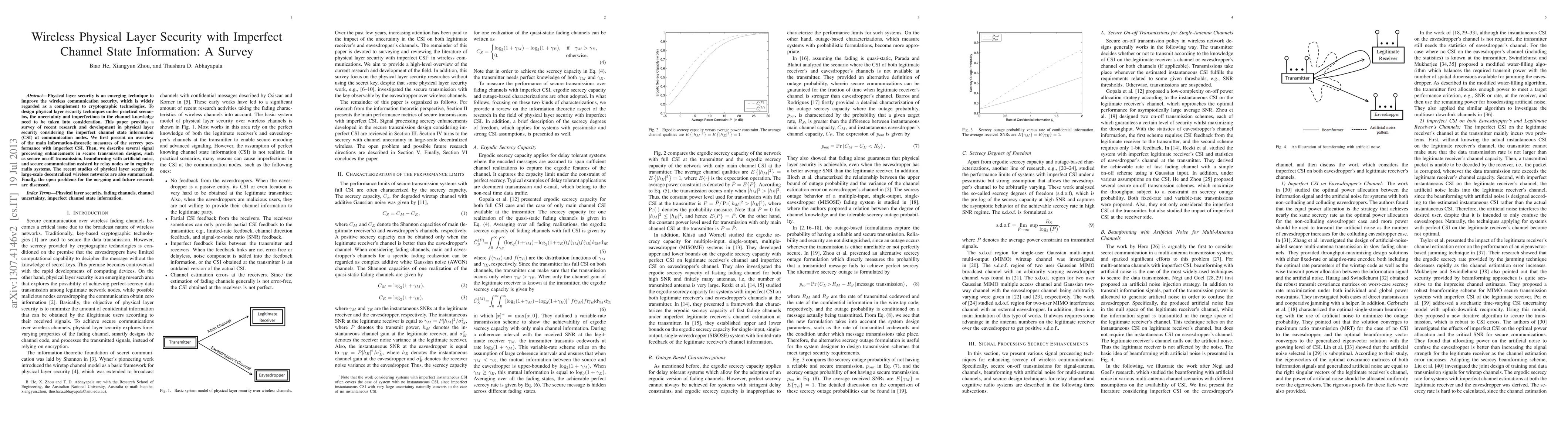 This paper surveys recent advancements in wireless physical layer security, focusing on techniques under imperfect channel state information. It discusses information-theoretic measures, signal processing enhancements, and secure communication in large-scale networks, while also highlighting open research challenges.